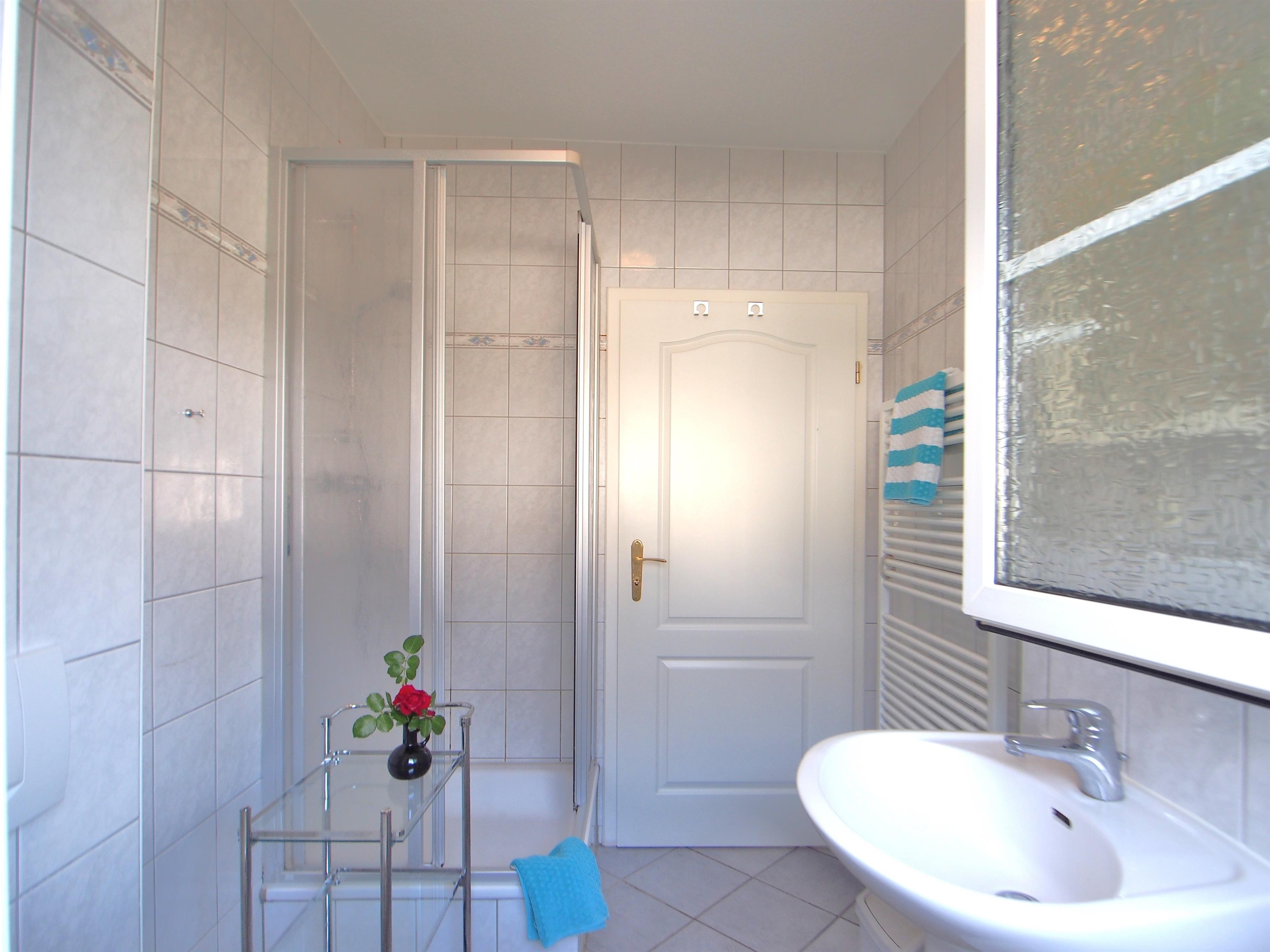 Die Einrichtungen der Anlage wie Waschraum mit Waschmaschine und Trockner (gegen Gebühr), PKW-, Fahrradstellplatz, kleiner Spielplatz, Tischtennisplatte und Grillplatz auf der Spielwiese hinter den Ferienhäusern können nach Rücksprache mit dem Hausmeister von allen Gästen der Ferienanlage genutzt werden. Die Wohnungen im Ober- und Erdgeschoß besitzen getrennte Eingänge. Der Zugang zu der Wohnung im Obergeschoss erfolgt über eine Außen - Wendeltreppe.