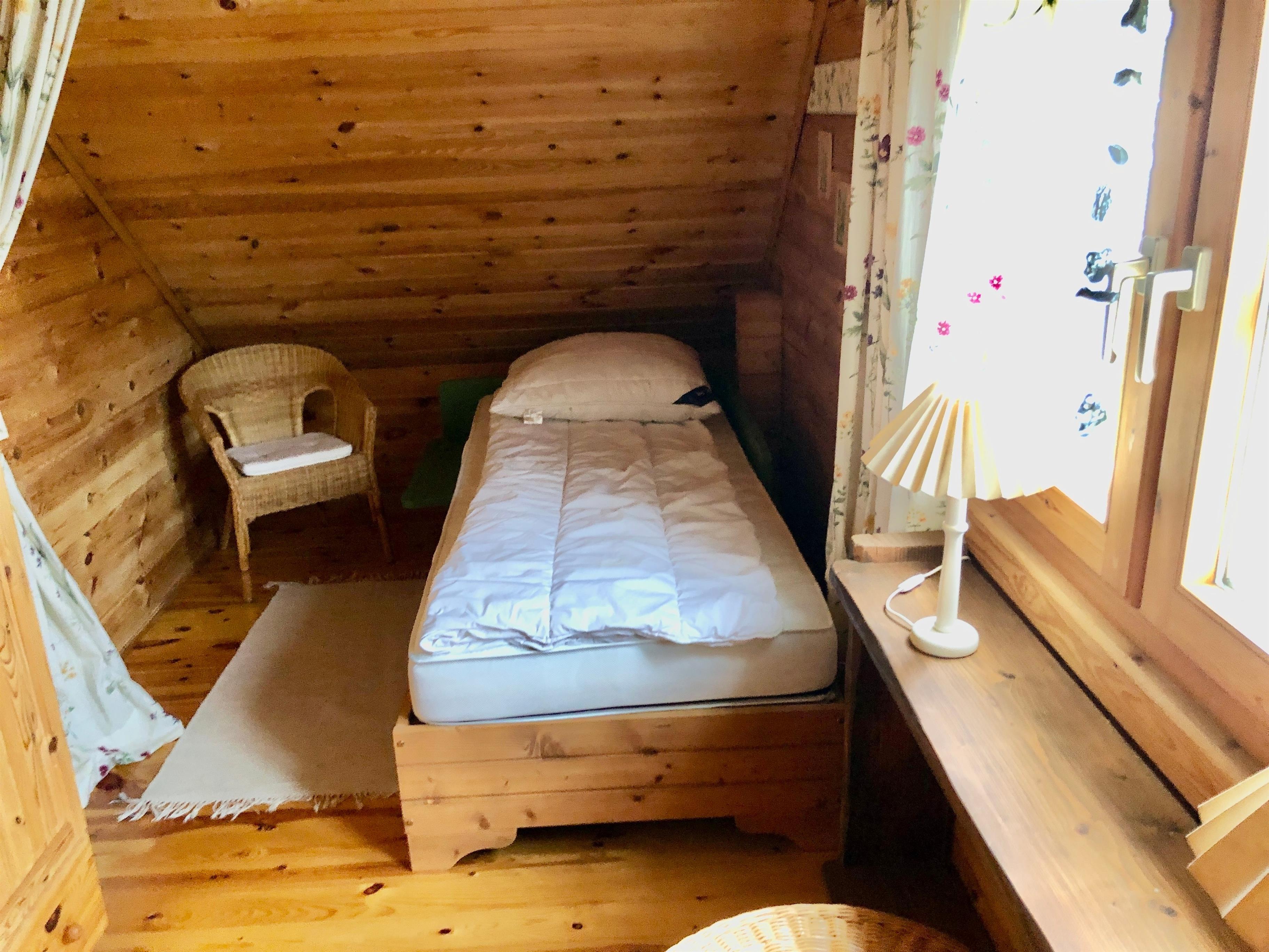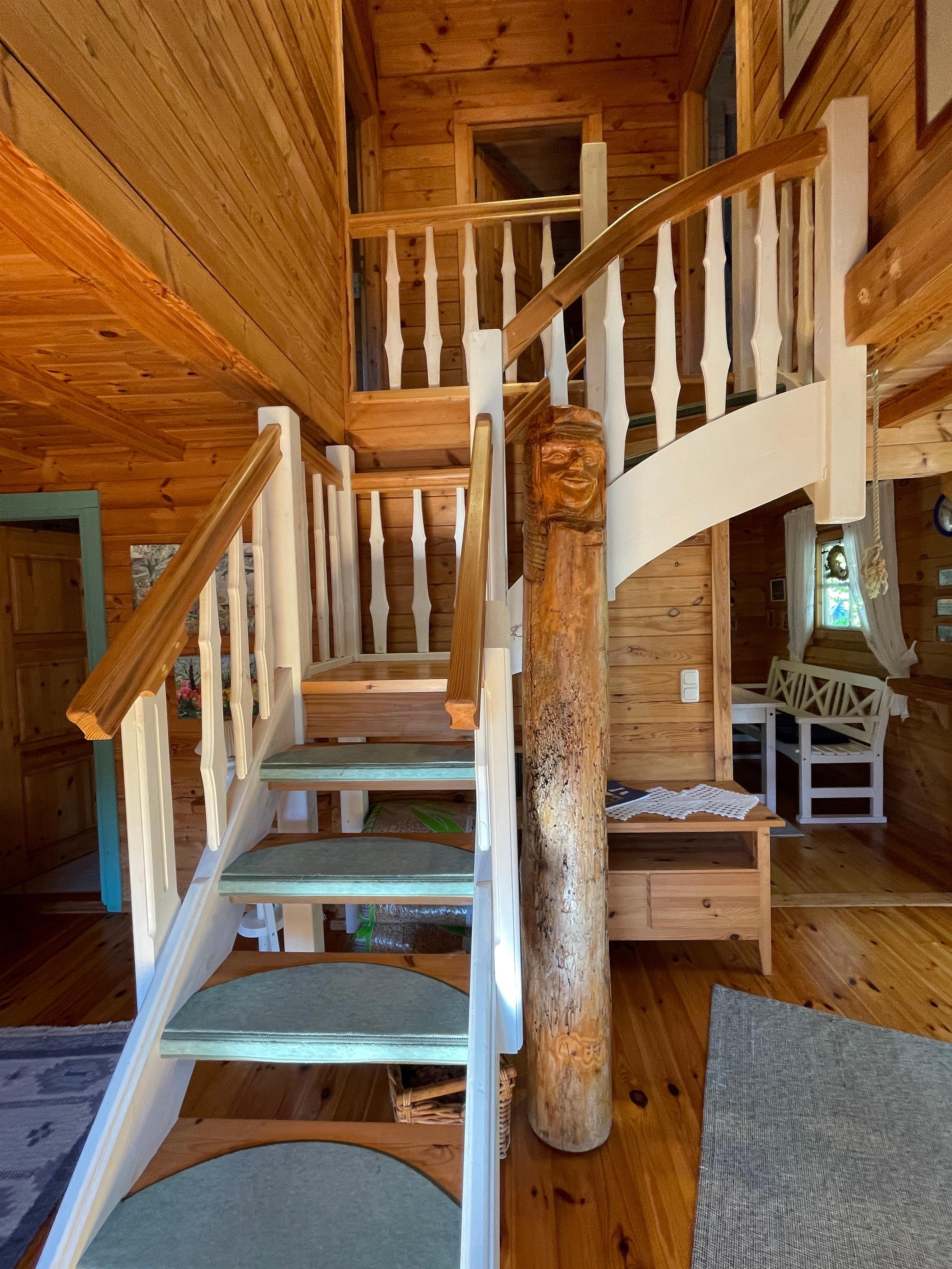 Ein kleines gemütliches Blockhaus (75 m²) mit einem großen Wintergarten und Terrasse für vier Personen in ruhiger Lage. Das Grundstück ist nicht eingezäunt.