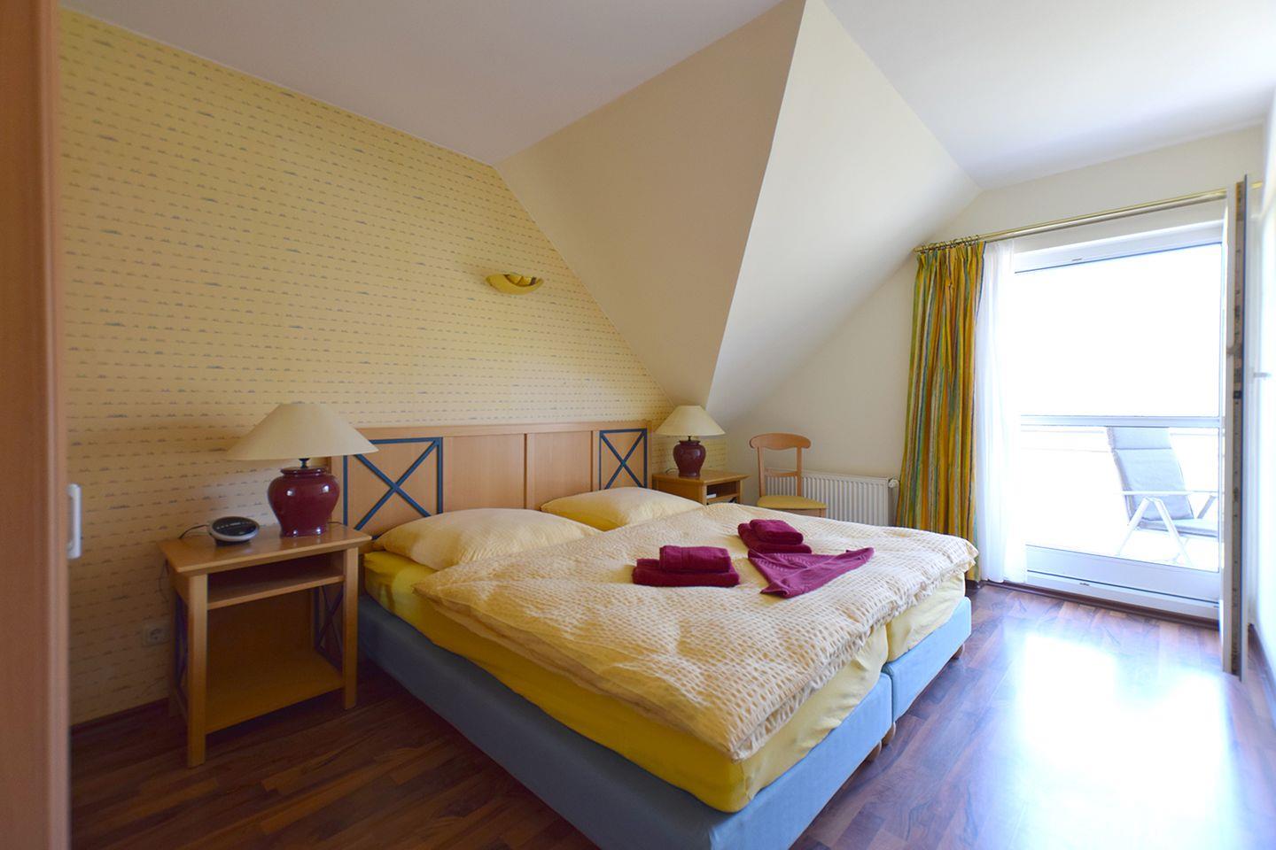 Ferienwohnung bis 4 Personen | ca. 74 m² Wohnfläche | 2. OG mit Fahrstuhl | Wohn-/Essbereich mit Küchenzeile, Flur, Bad, 2 Schlafzimmer | Nord- und Ost-Balkon | 1 Tiefgaragenstellplatz | Wohn-/Essbereich Wohnbereich mit Sitzgarnitur, SAT-TV und Radio, Essbereich bis 6 Personen | Küchenzeile Kühlschrank mit Gefrierfach, Cerankochfeld, Backofen, Geschirrspüler, Kaffeemaschine, Toaster, Wasserkocher | Bad Badewanne, WC | 1 Schlafzimmer 1 Doppelbett (200 x 200 cm) | 1 Schlafzimmer 2 Einzelbetten (90 x 200 cm) | Fliegenschutzgitter, 2 Balkone Richtung Norden und Osten jeweils mit Möbeln, 1 Tiefgaragenstellplatz im Haus, Fahrradkeller zur alleinigen Nutzung im Haus | Nichtraucherwohnung, Haustiere nicht gestattet; WLAN vorhanden | Bettwäsche und Handtücher nicht inklusive