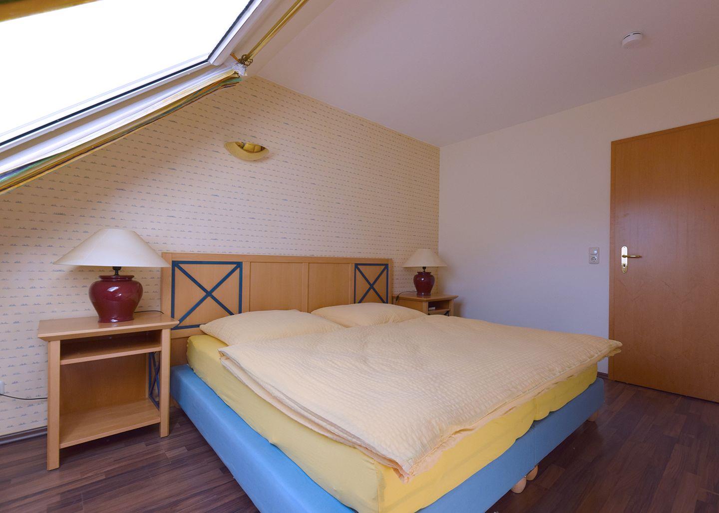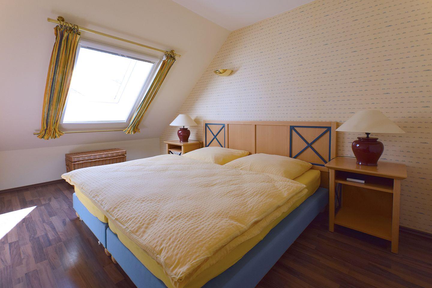 Das Schlafzimmer verfügt über ein gemütliches Doppelbett (200 x 200 cm) und bietet genügend Platz für eine entspannte Nachtruhe.