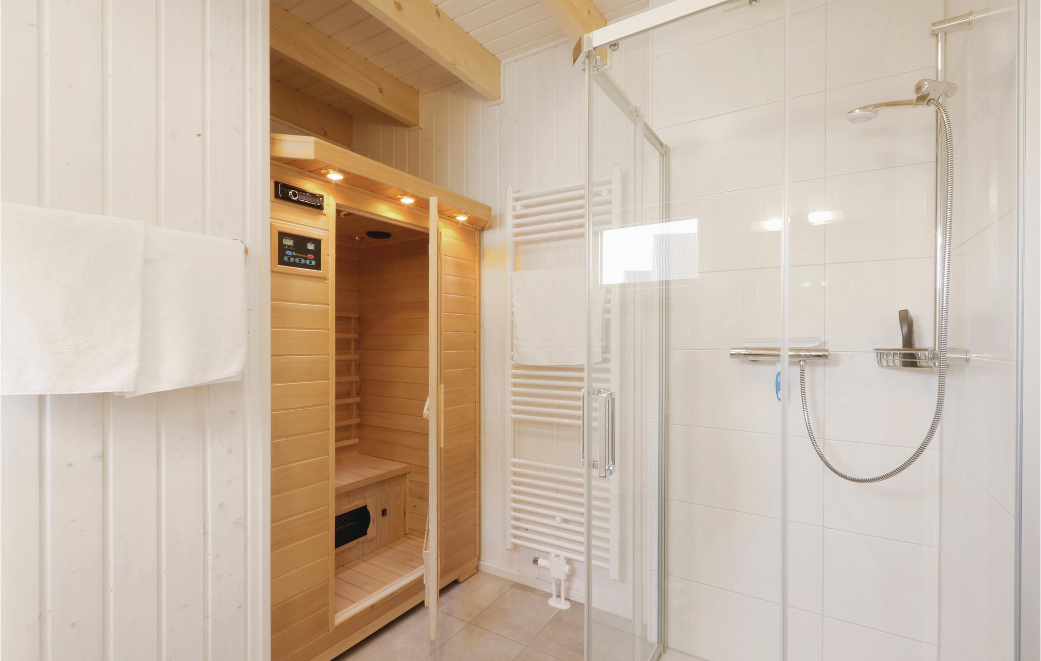 Glæd jer til masser af plads i dette feriehus på to etager, der ligger i den skønne feriepark OstseeResort Olpenitz. Det tager ikke ret lang tid at gå til den skønne Østersøstrand, ligesom Olpenitz marina med lystfartøjer der glider ud og ind og et livligt fritidsliv, ligger lige foran ferieparkens porte. På husets førstesal ligger begge de store soveværelser og et af badeværelserne. I badeværelset i stueplan ligger den private infrarøde varmekabine. Der mangler heller ikke en stor terrasse, hvor de lange afslappede feriedage kan nydes i solen. Ferieparken i Olpenitz er en rejse værd uanset årstid, tænd op i kaminen og slap af i varmen efter en lang spadseretur i den friske luft – eller hop en tur i saunaen.
