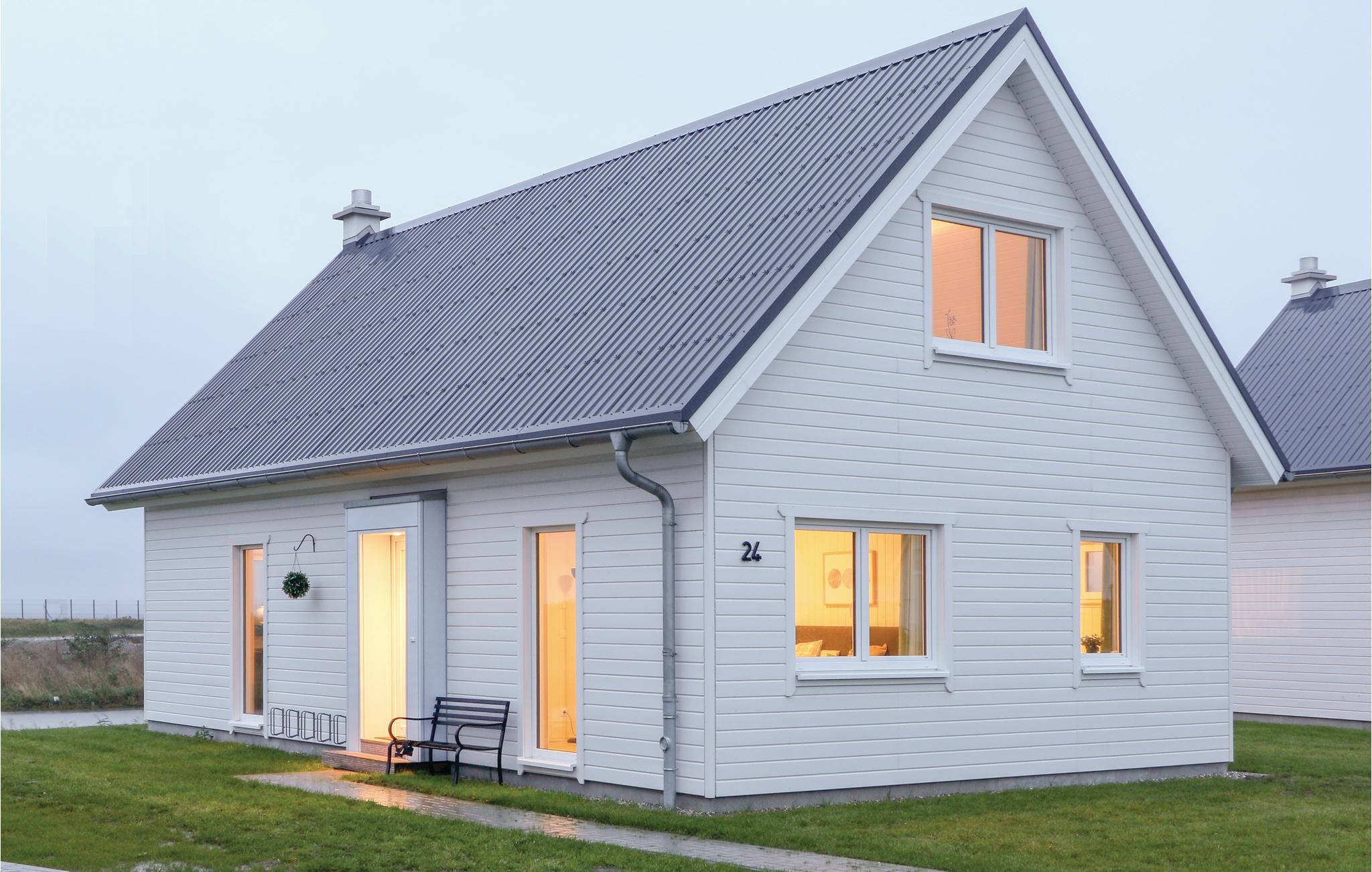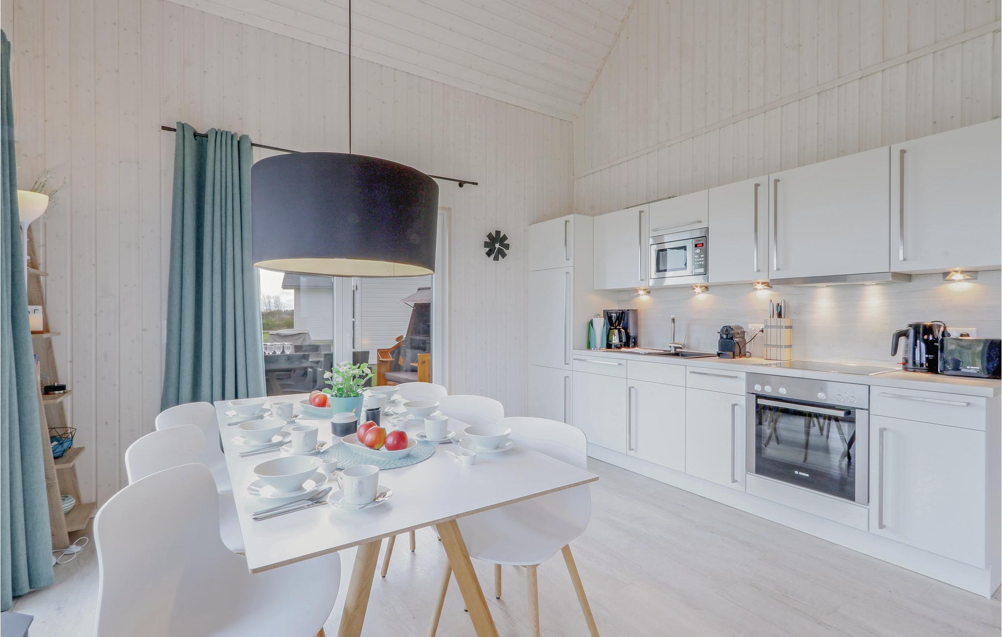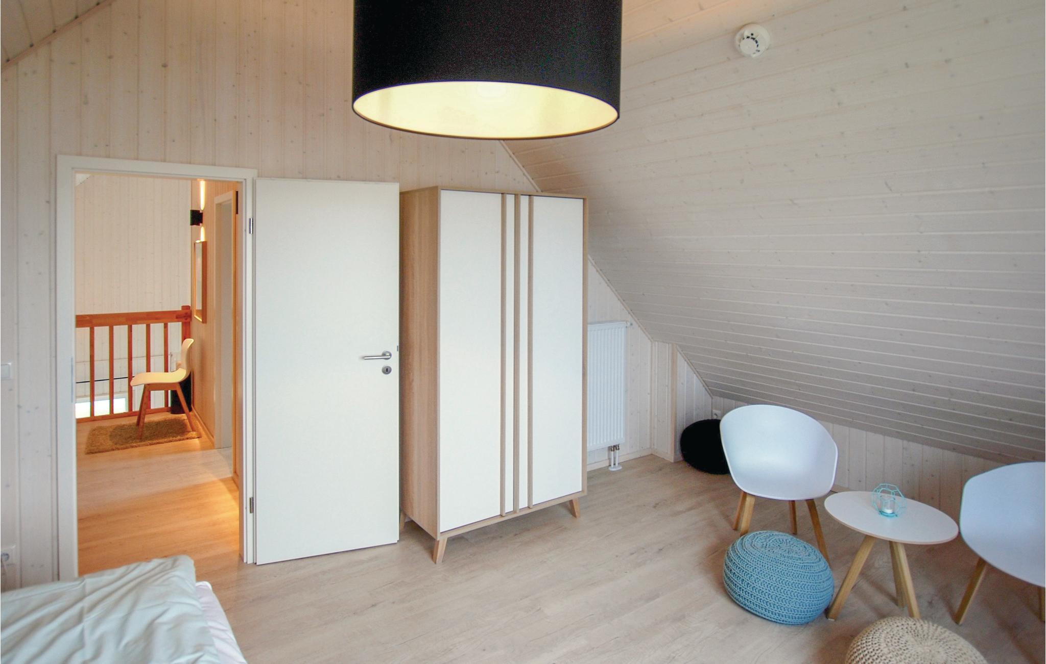 Dette smukke træhus på 2 etager ligger i ferieparken OstseeResort Olpenitz. Der er kun få minutters gang til Østersøen. Her finder I og jeres kære alt, I skal bruge til en vellykket ferie: I stueetagen er 2 af de 3 soveværelser samt det store, loftsagtige opholds- og spiseområde. De høje lofter og store panoramavinduer lukker meget lys ind og lader huset virke rummeligt. Herfra har I adgang til den store terasse, hvor I kan slappe af, solbade og grille. Vælg mellem at sidde i de komfortable havemøbler eller i den specielle strandkurv som er symbol for en ferie ved den tyske østersøkyst.