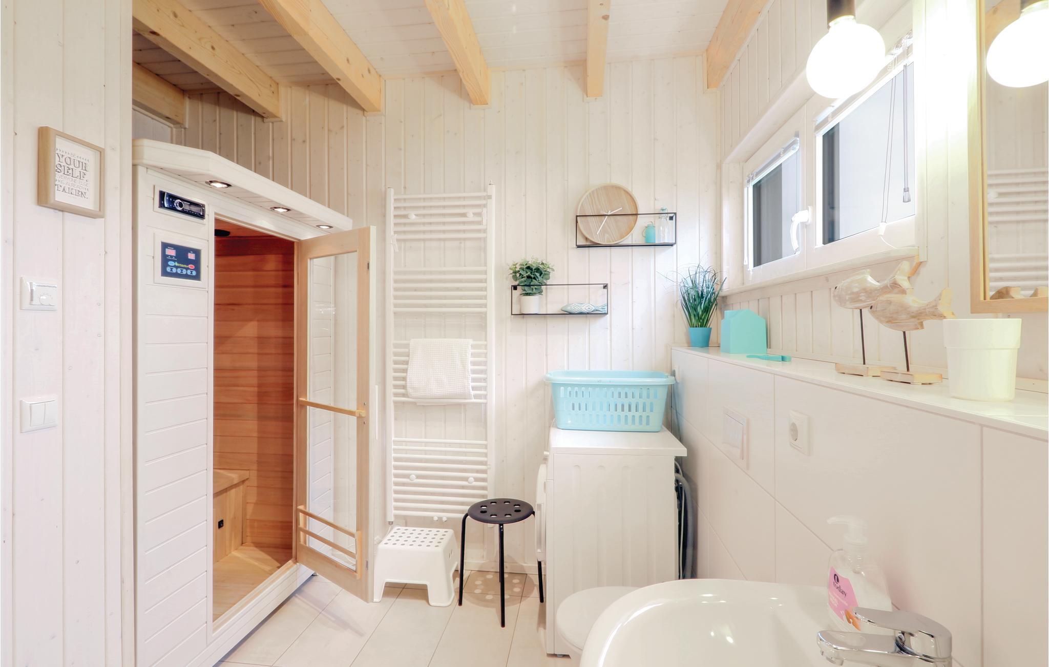 Wellnessbadet i stueetagen er jeres lille, private wellnessparadis hvor I kan slappe af i den moderne infrarøde varmekabine. I har gratis trådløst internet og desuden fastnetelefon til gratis samtaler i Tyskland.