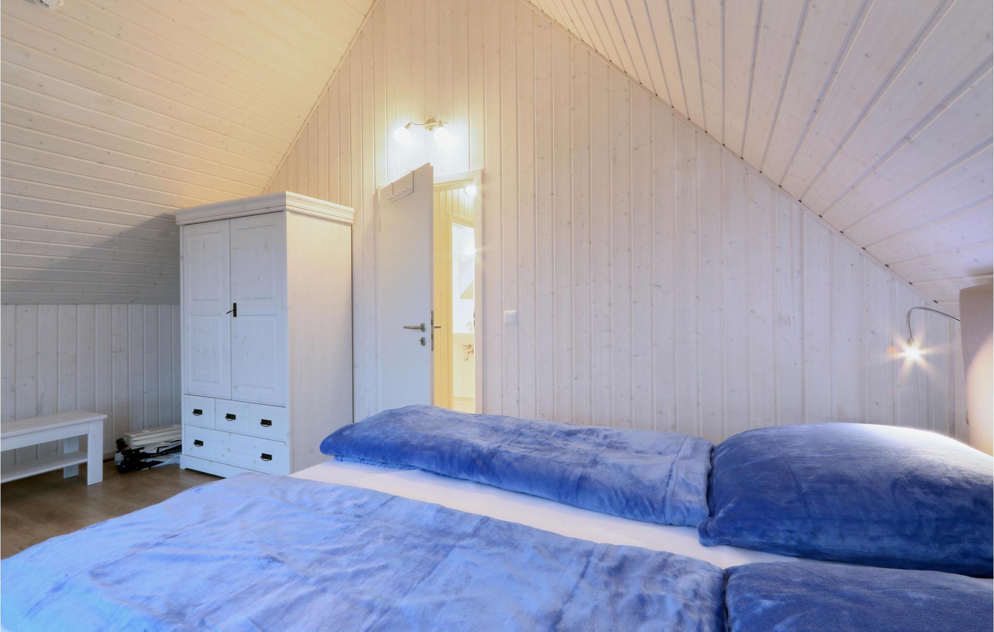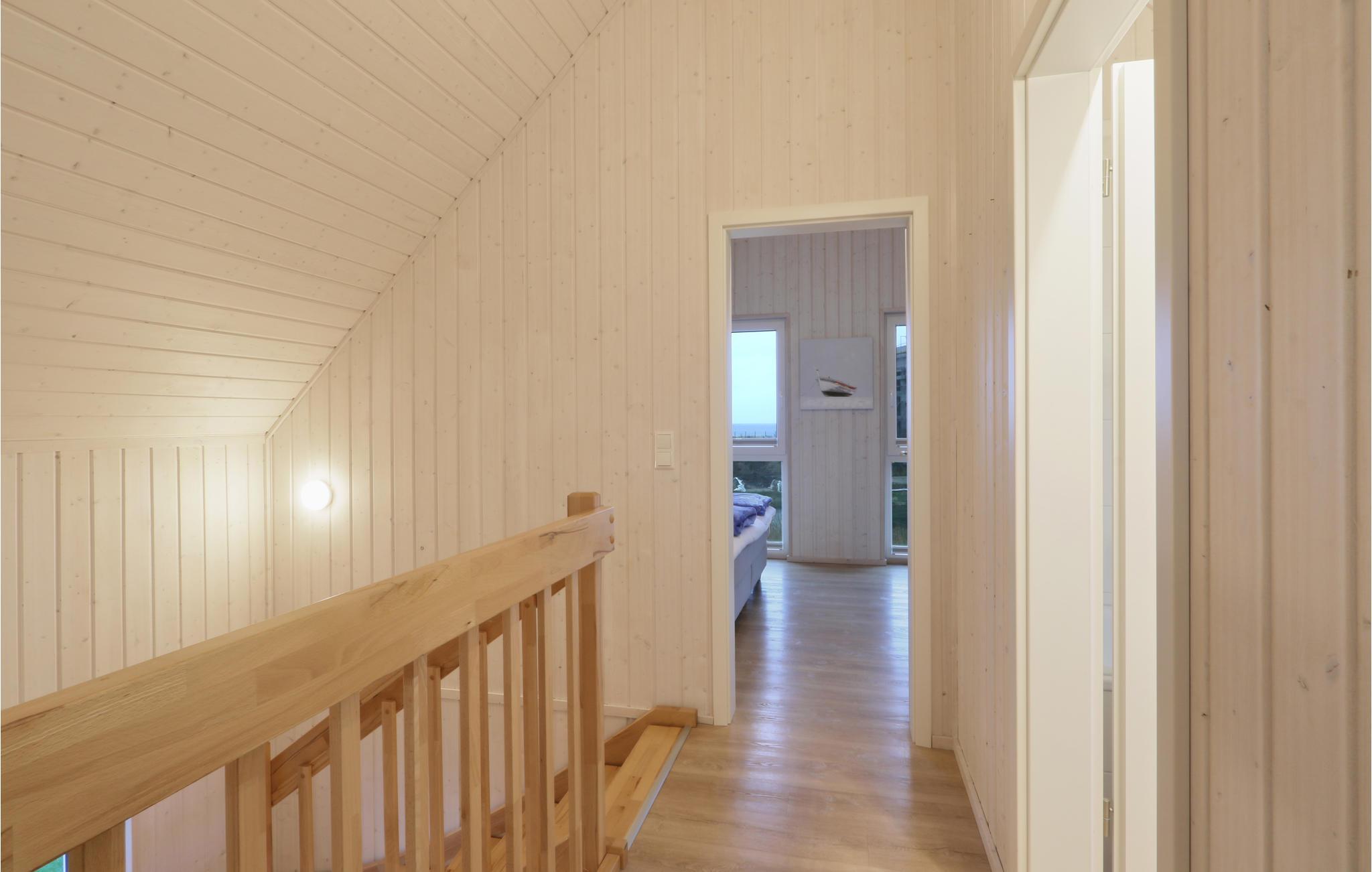 På husets førstesal ligger begge de store soveværelser og et af badeværelserne.I dagligstuen i stueetagen er der to yderlige sovepladser på sovesofaen. I badeværelset i stueplan ligger den private infrarøde varmekabine.