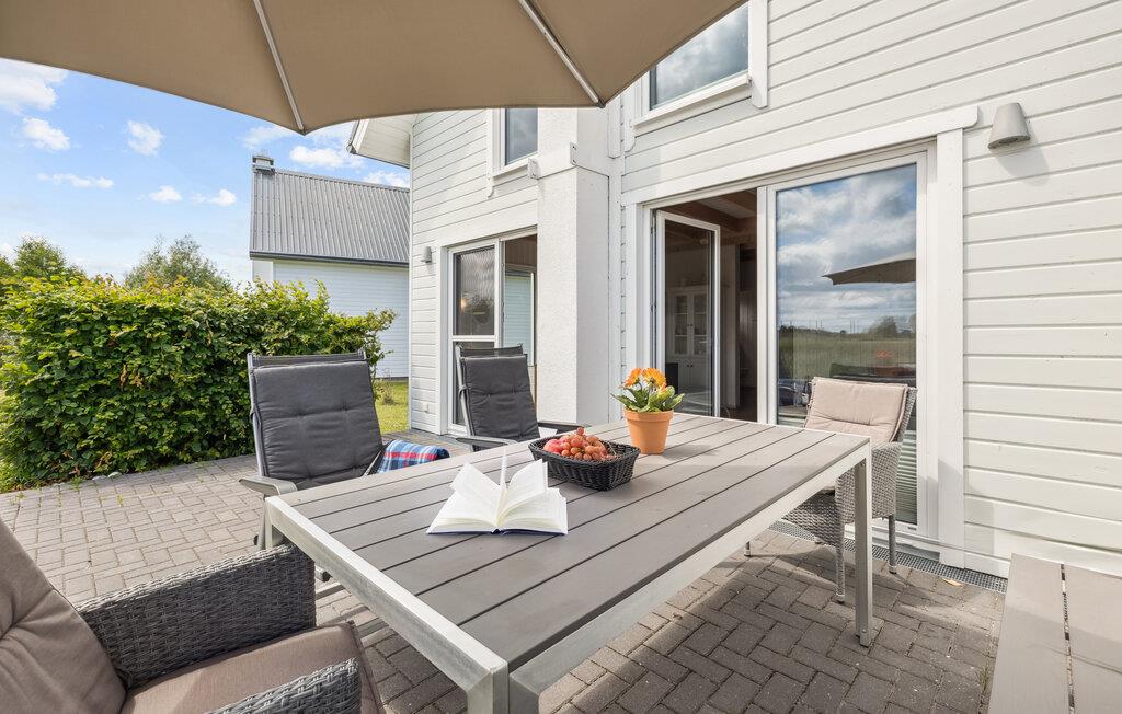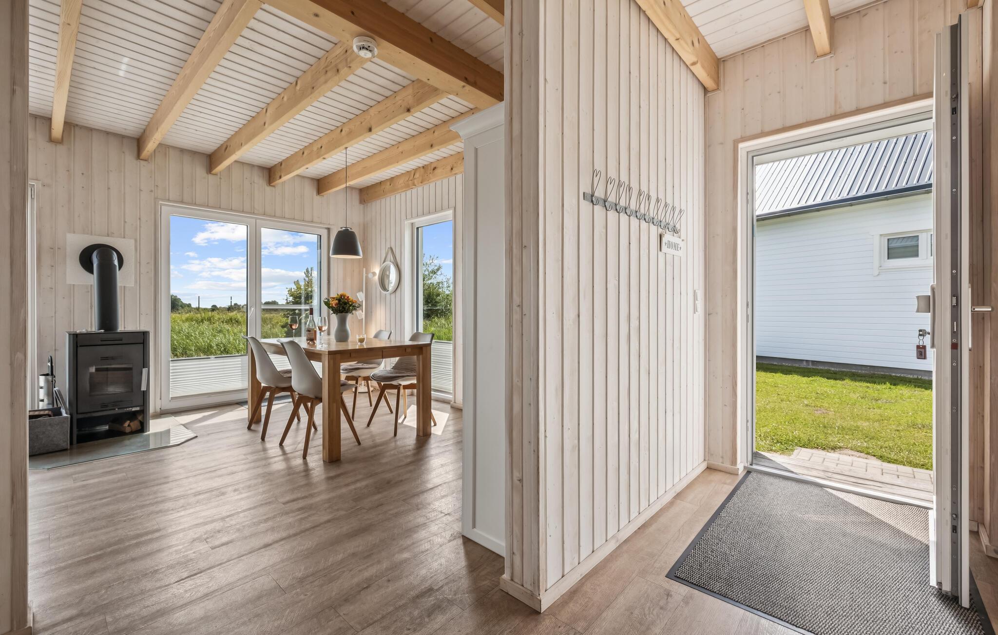 Glæd jer til masser af plads i dette feriehus på to etager, der ligger i den skønne feriepark OstseeResort Olpenitz. Det tager ikke ret lang tid at gå til den skønne Østersøstrand, ligesom Olpenitz marina med lystfartøjer der glider ud og ind og et livligt fritidsleben, ligger lige foran ferieparkens porte. På husets førstesal ligger begge de store soveværelser og et af badeværelserne. I badeværelset i stueplan ligger den private sauna. Der mangler heller ikke en stor terrasse, hvor de lange afslappede feriedage kan nydes i solen. Ferieparken i Olpenitz er en rejse værd uanset årstid, tænd op i kaminen og slap af i varmen efter en lang spadseretur i den friske luft – eller hop en tur i den infrarøde varmekabine.