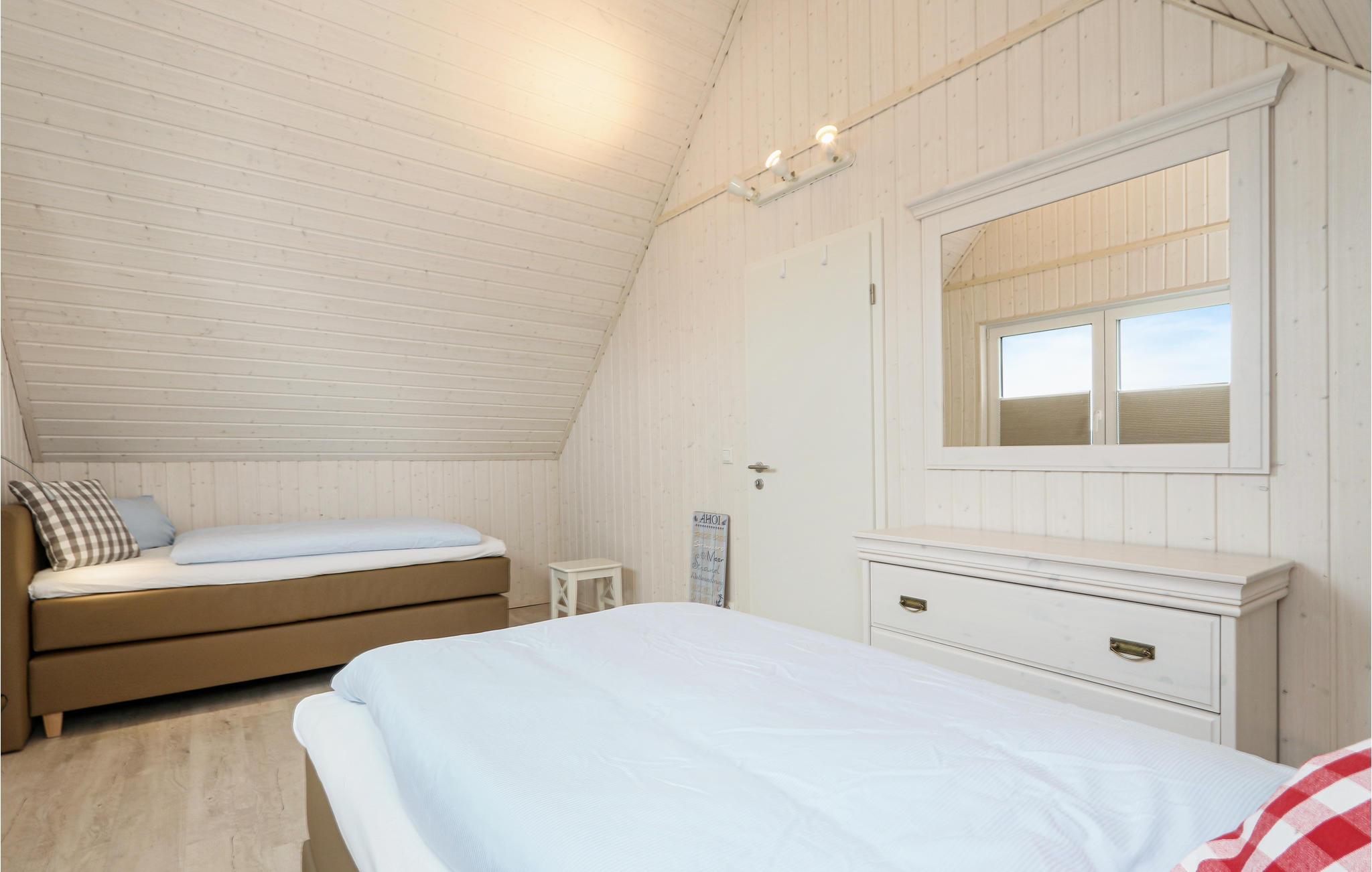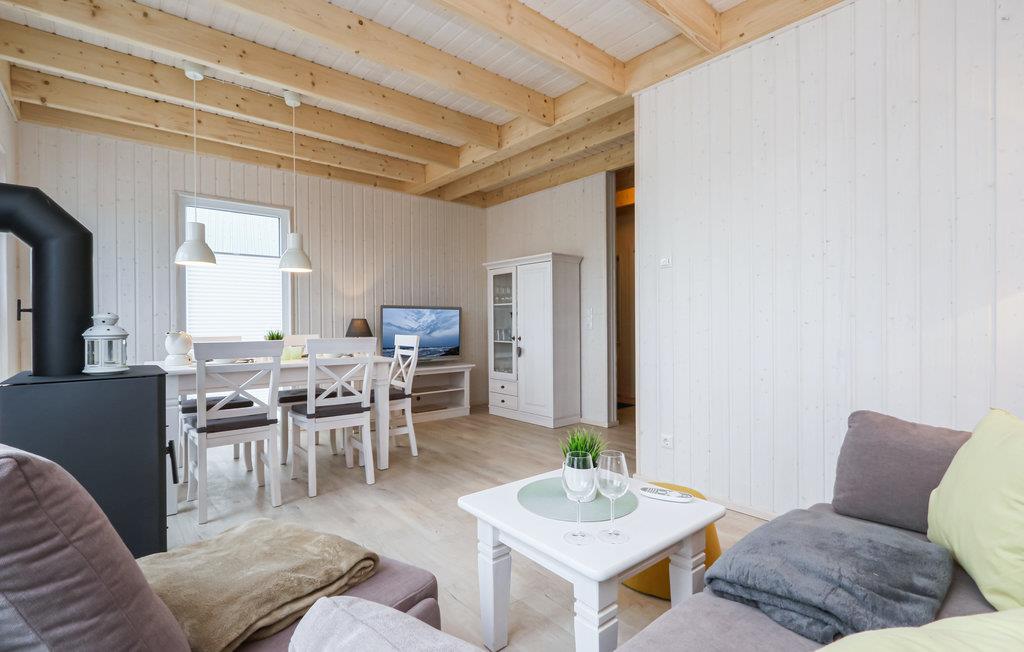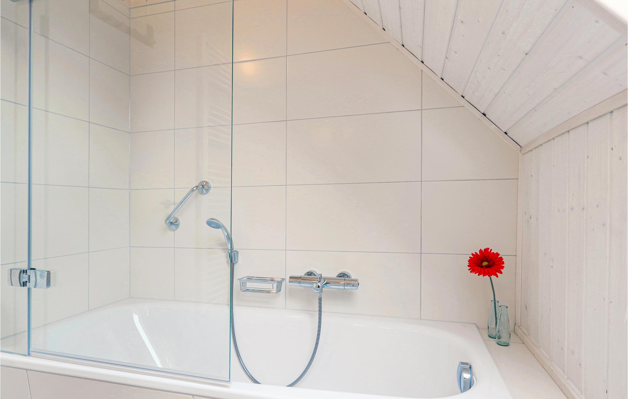 Med to badeværelser er feriehuset i Olpenitz også perfekt til to par eller en gruppe venner. Sofaen i opholdsstuen kan nemt laves om til to komfortable sovepladser.