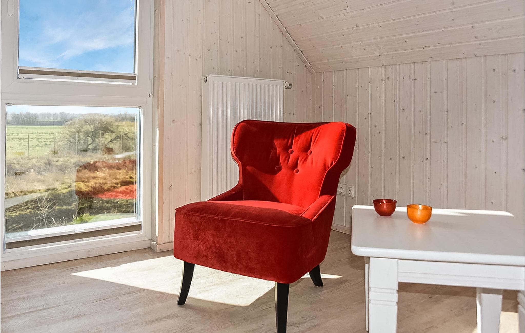 Husets opholdsområde er meget lys og venlig pga. store panoramavinduer. På jeres private terrasse kan I nyde solen, holde en grillaften eller nyde den friske havluft under morgenmaden. En skandinavisk brændeovn sørger for romantisk stemning på køligere aftener. I husets infrarøde varmekabine kan I varme jer op igen efter en lang gåtur ved stranden eller en sejltur. I feriehuset er der et Home Entertainment TV til rådighed.
