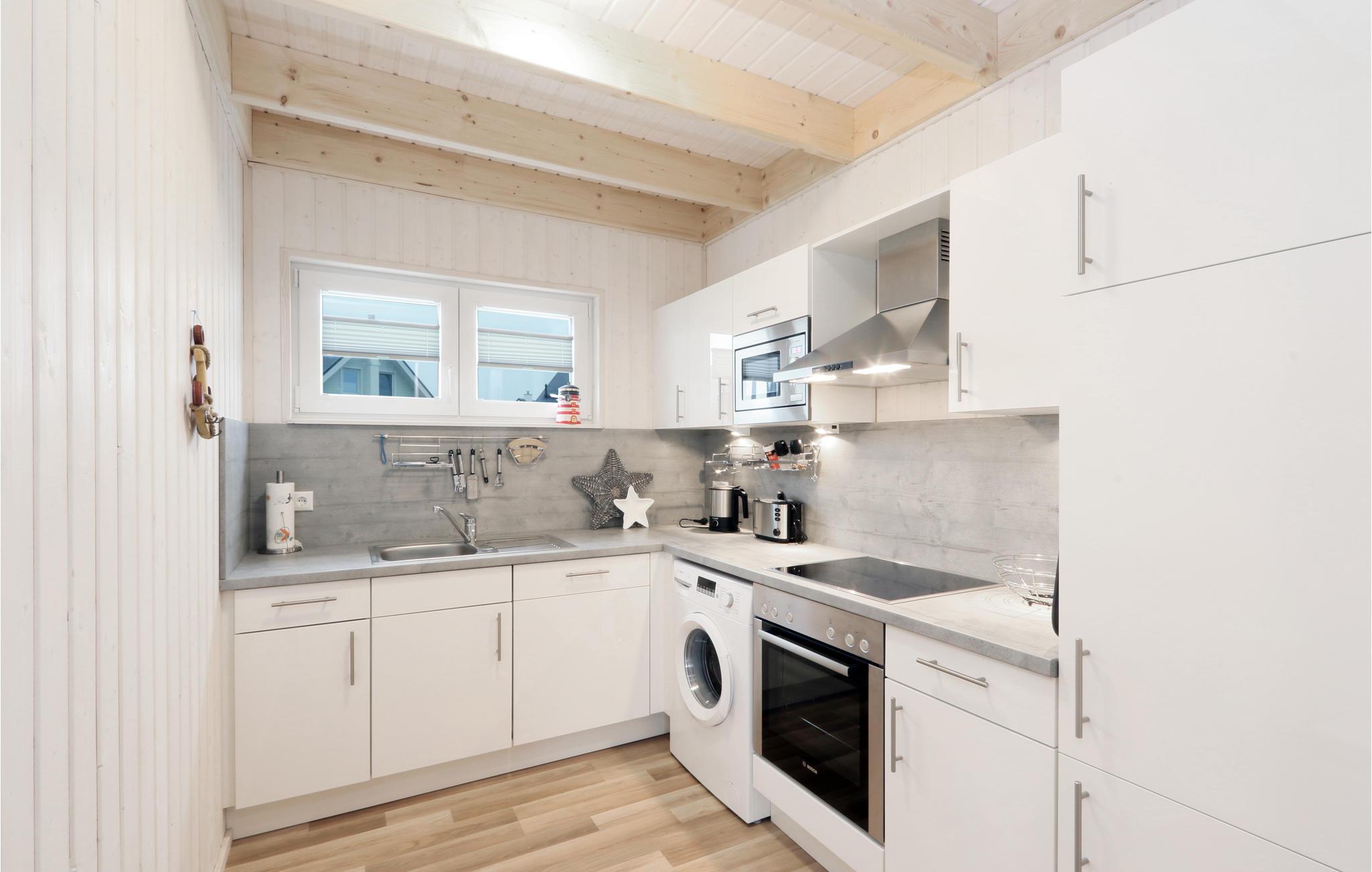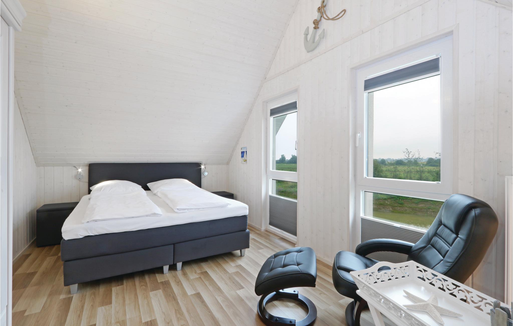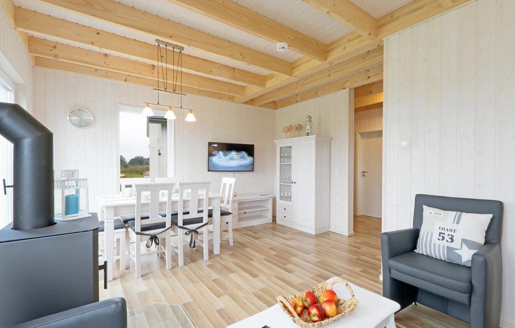 På husets førstesal ligger begge de store soveværelser og et af badeværelserne. I badeværelset i stueplan ligger den private infrarøde varmekabine. Der mangler heller ikke en stor terrasse, hvor de lange afslappede feriedage kan nydes i solen. Ferieparken i Olpenitz er en rejse værd uanset årstid, tænd op i kaminen og slap af i varmen efter en lang spadseretur i den friske luft – eller hop en tur i den infrarøde sauna.