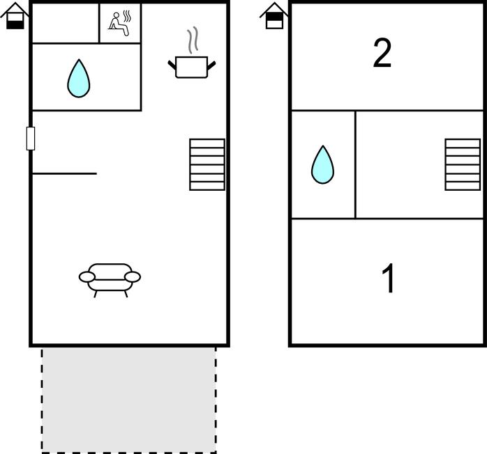 På 1. sal er der to soveværelser med dobbeltsenge og et af badeværelserne. I et af soveværelserne kan de to enkeltsenge laves om til dobbeltsenge, så at op til 4 personer kan finde plads.