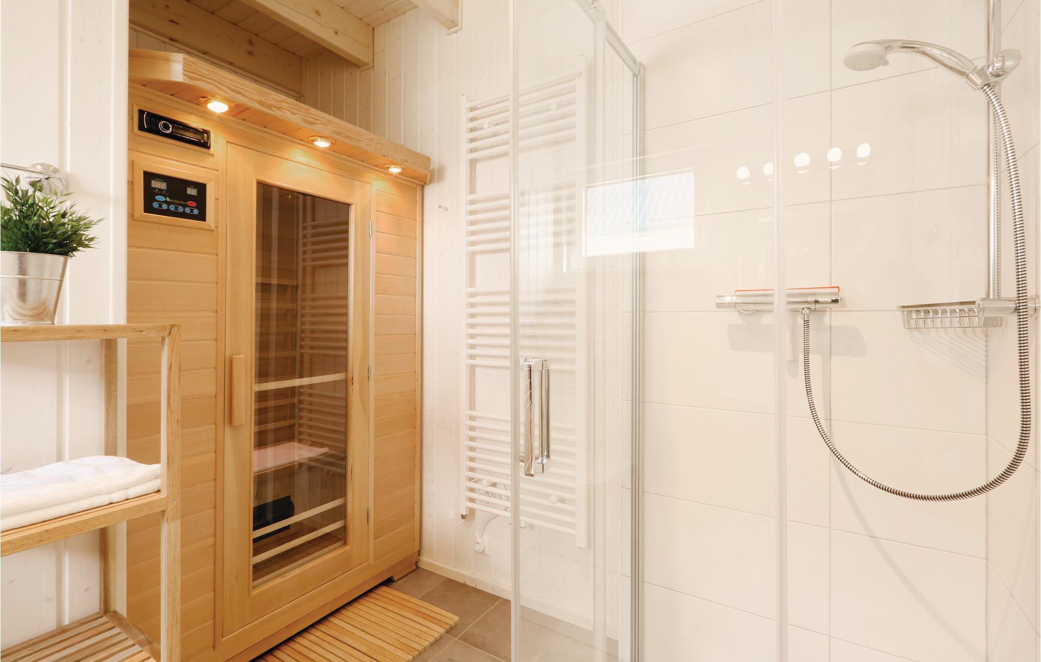I husets stueetage ligger den private infrarøde sauna. Selvfølgelig mangler der heller ikke en stor sydvestvendt terasse, hvor I kan nyde solen. Også om vinteren er Olpitz et besøg værd: Slap af i den infrarøde varmekabine efter en lang gåtur ved stranden eller hyg ved brændeovnen. I kan se film med god lyd og høre yndlingsmusik fra bluetooth-systemet.