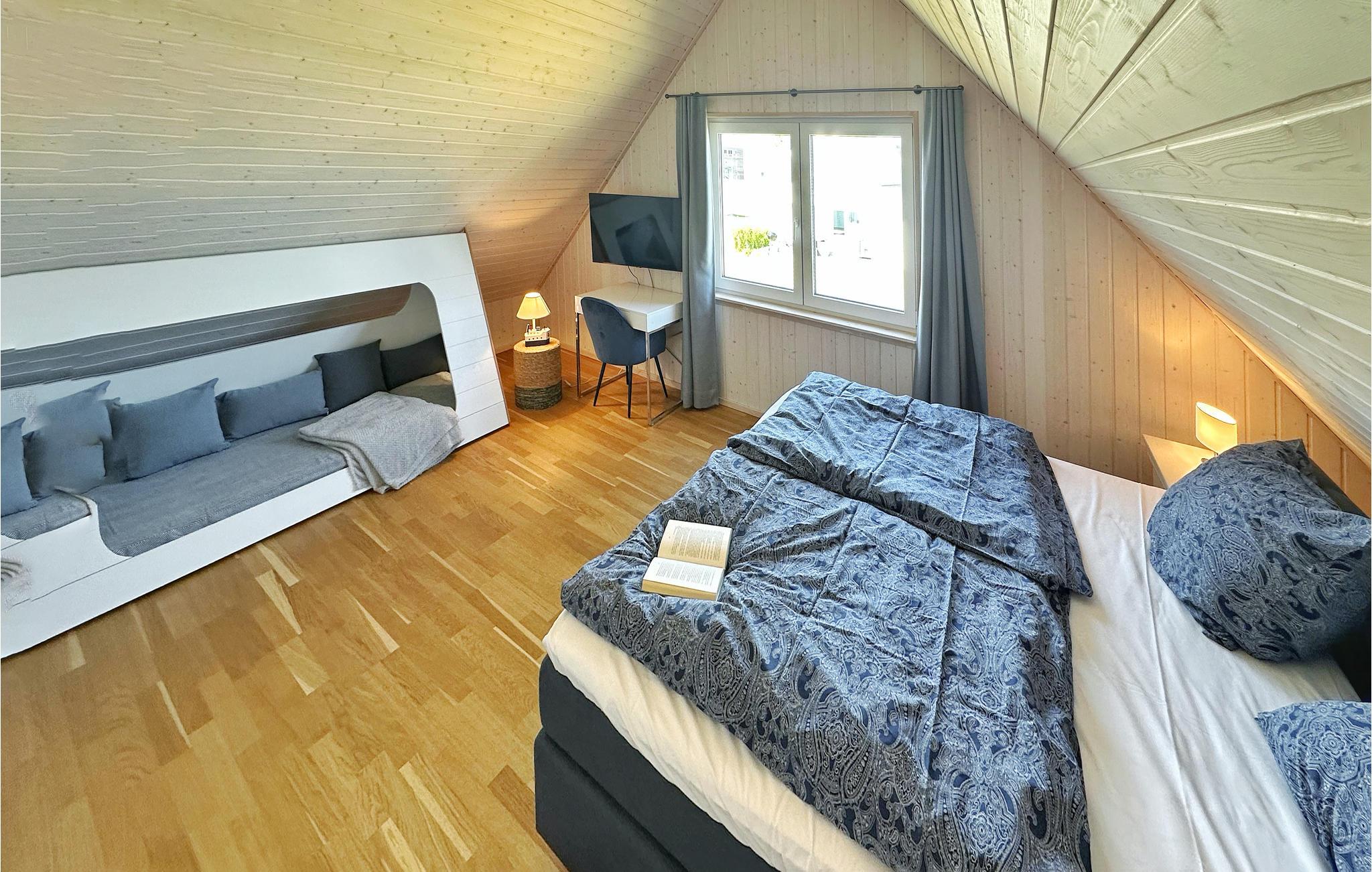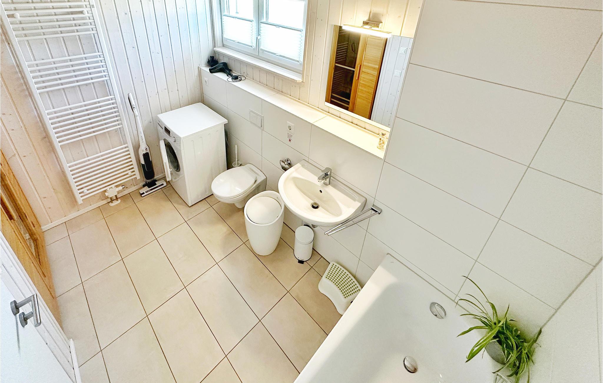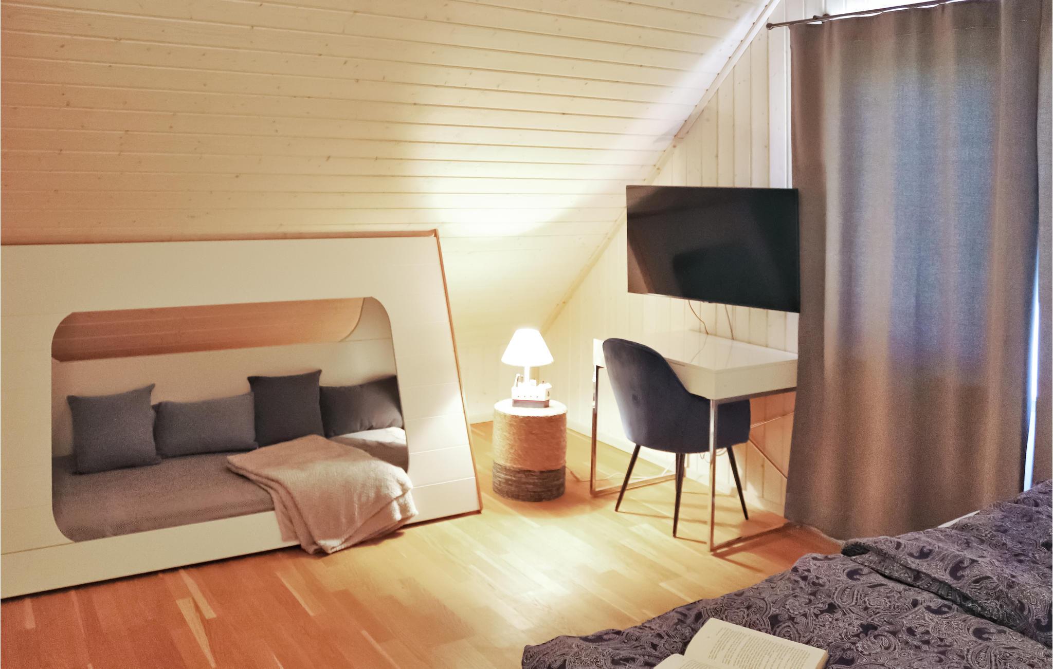 Om vinteren skaber den knitrende ild i brændeovnen en ekstra hyggelig atmosfære i opholdsrummet. Badeværelset i stueetagen er et lille wellnessparadis og har en moderne infrarød kabine. I huset er der Magenta-TV.