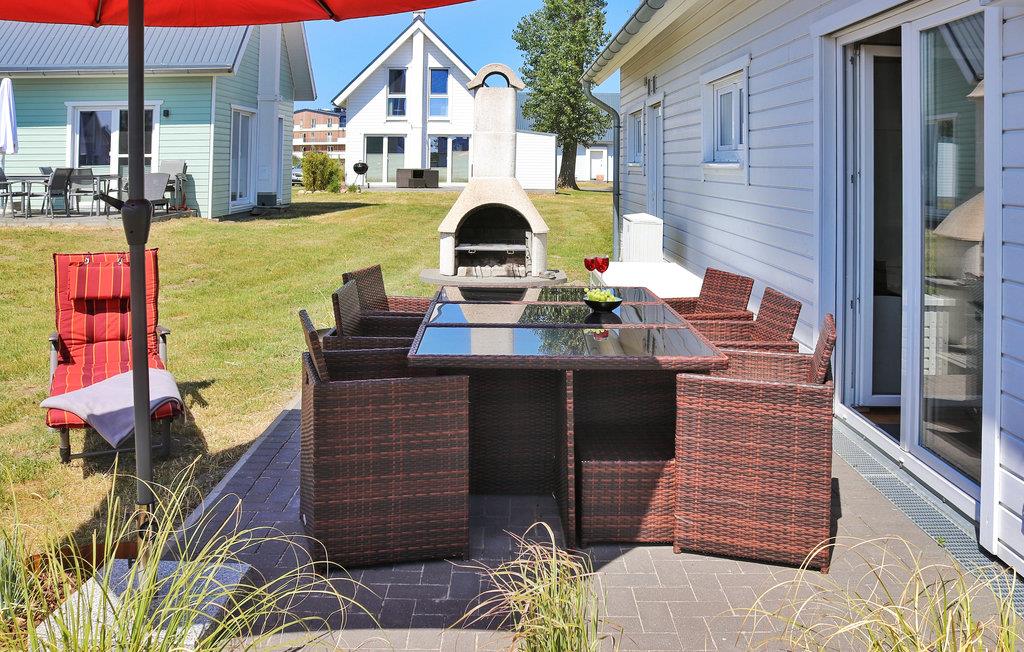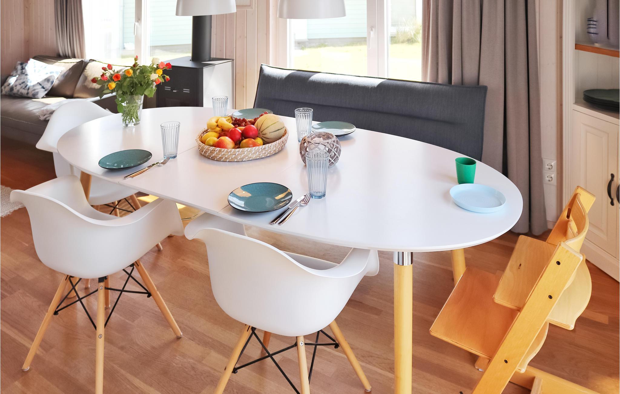 Dette hyggelige træhus med det fine navn "Eine Brise Glück" ligger i ferieparken OstseeResort Olpenitz ikke langt fra Østersøen. Her er der alt, hvad I skal bruge til en afslappende familieferie.