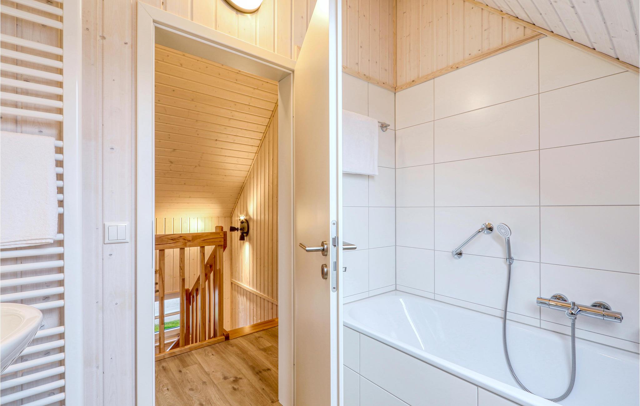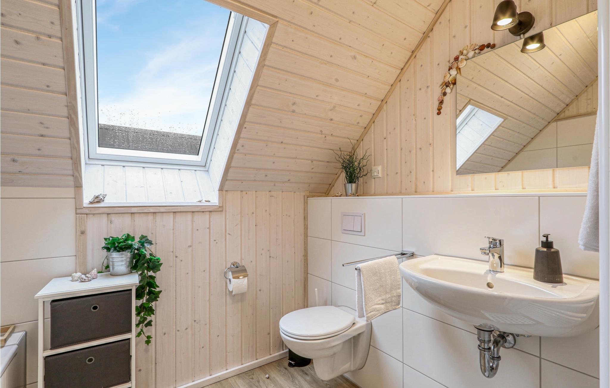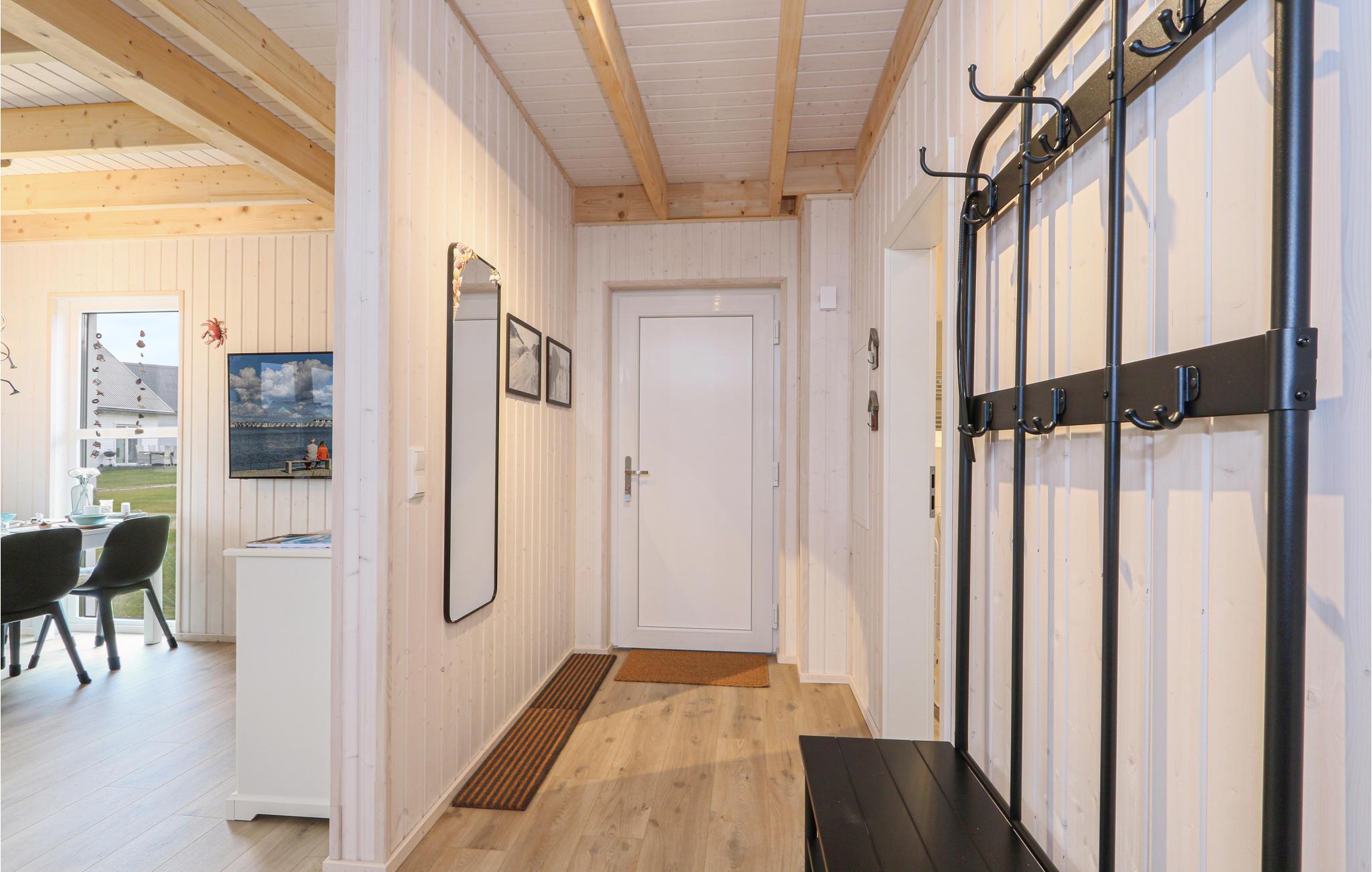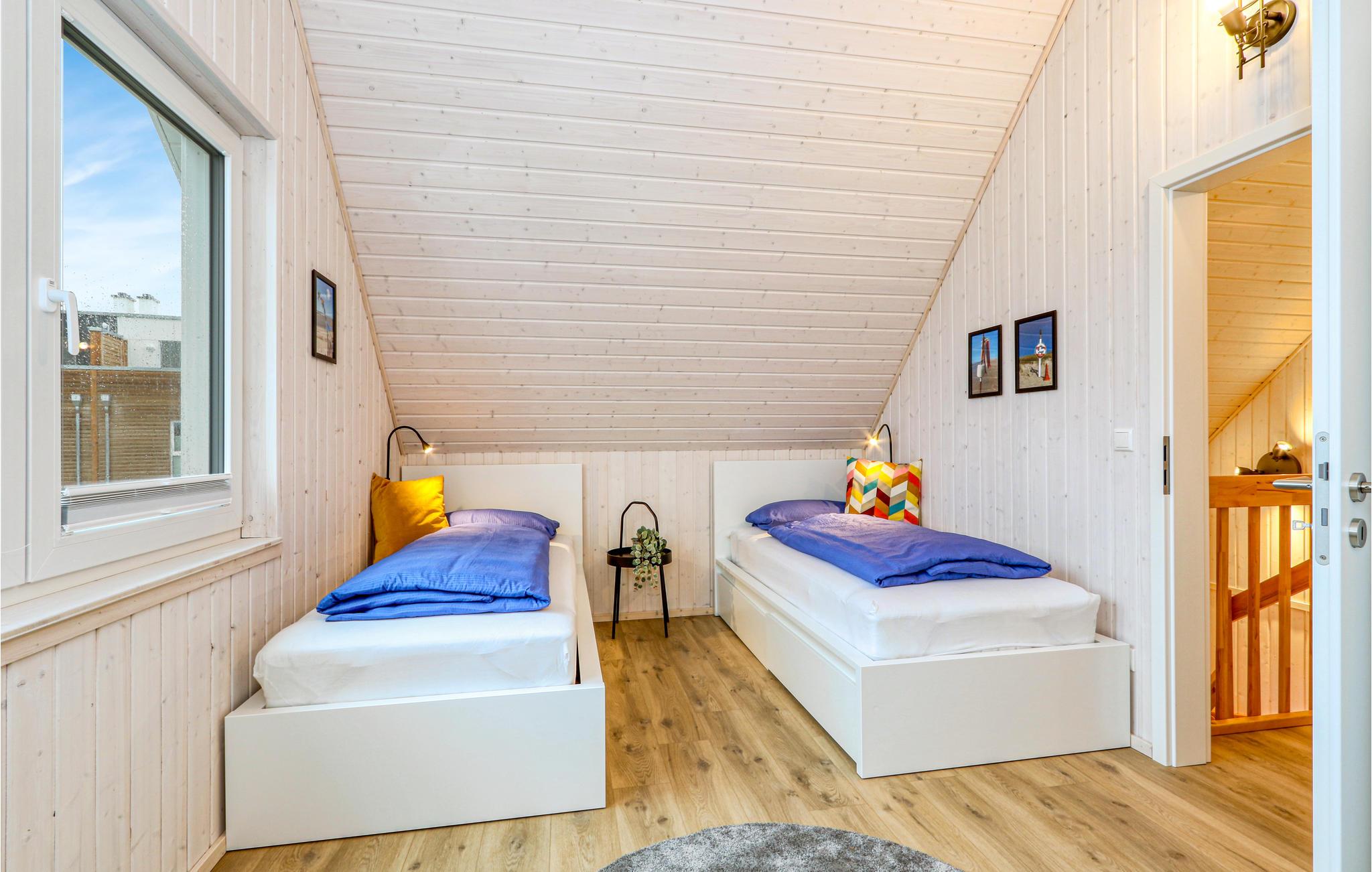 Værelserne fordeler sig på to etager. Feriehusets private sauna ligger i badeværelset i stueetagen og er et godt sted at slappe af efter en lang dag ved vandet. Herefter kan I finde jer til rette i stuen, mens ilden buldrer i brændeovnen. To Smart-TV samt en DAB kassetteradio er også til rådighed. Et af soveværelserne har en dobbeltseng, det andet soveværelse har to enkeltsenge og en udtræksseng med lamelramme og madras. Der er også et lille legeområde for børn, hvor de små vil have det rigtig sjovt.