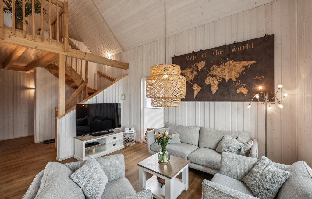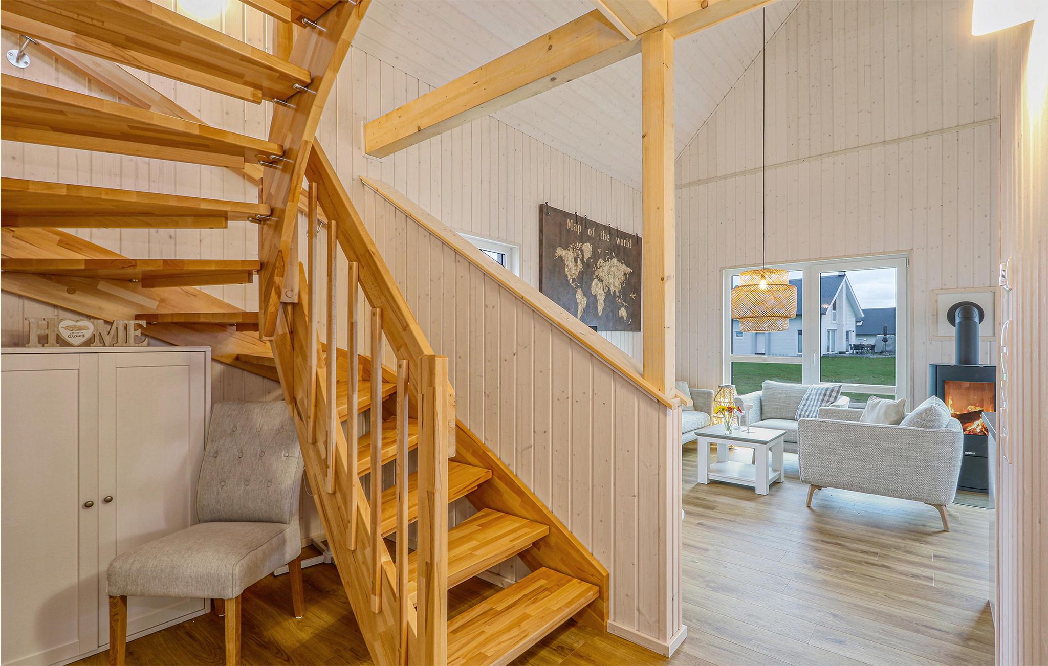 I har også adgang til en rummelig terrasse, hvor I kan slappe af, solbade og tilberede mad på grillen. Om vinteren skaber den knitrende ild i brændeovnen en ekstra hyggelig atmosfære i stuen. Saunaen er det perfekte sted at slappe af efter en lang gåtur, og med tre Smart-tv'er kommer I sikkert ikke til at kede jer.