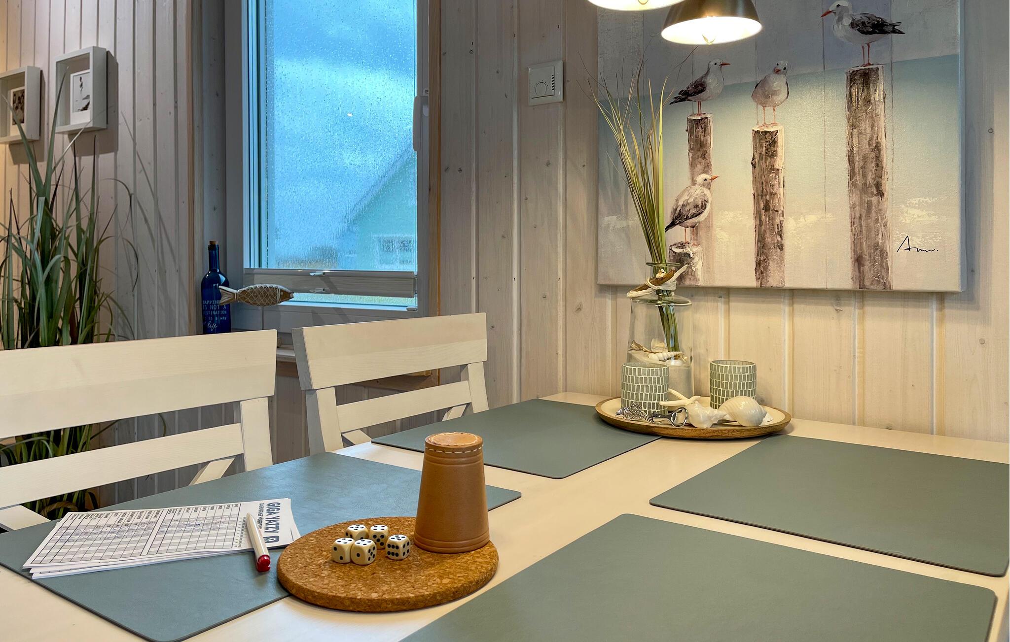 Da husene ligger lige ud til kysten, håber vi på jeres forståelse for, at møblerne på terassen kun står til rådighed i sommersæsonen, i vintersæsonen pakkes de sikkert væk grundet den kraftige vind.