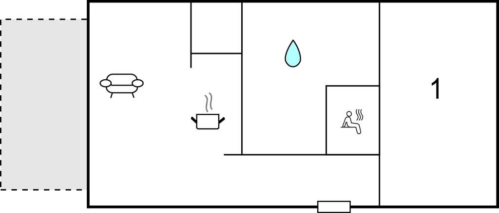 Huset er i et plan. I soveværelset er der en behagelig springmadras og i stuen, sørger brændeovnen for både hygge og varme. I huset er der to tv, og er vejret godt, så nyd livet på terrassen. Lav maden på grillen, så smage den ekstra godt.