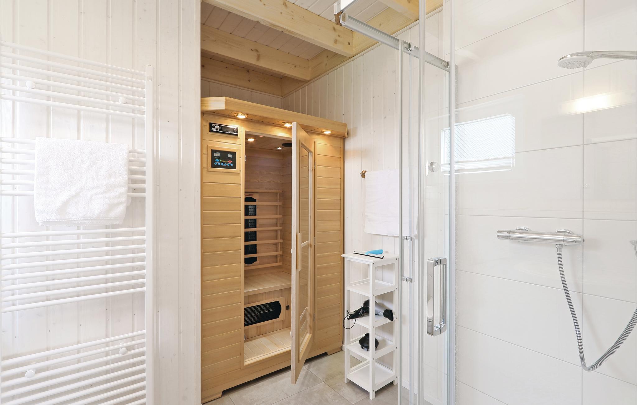 Feriehuset er moderne og komfortabelt indrettet. I kan finde jer tilpas i den infrarøde varmekabine på kolde dage og derefter slappe af foran brændeovnen i stuen. En Blu-Ray-afspiller er tilgængelig her, så intet står i vejen for en filmaften.