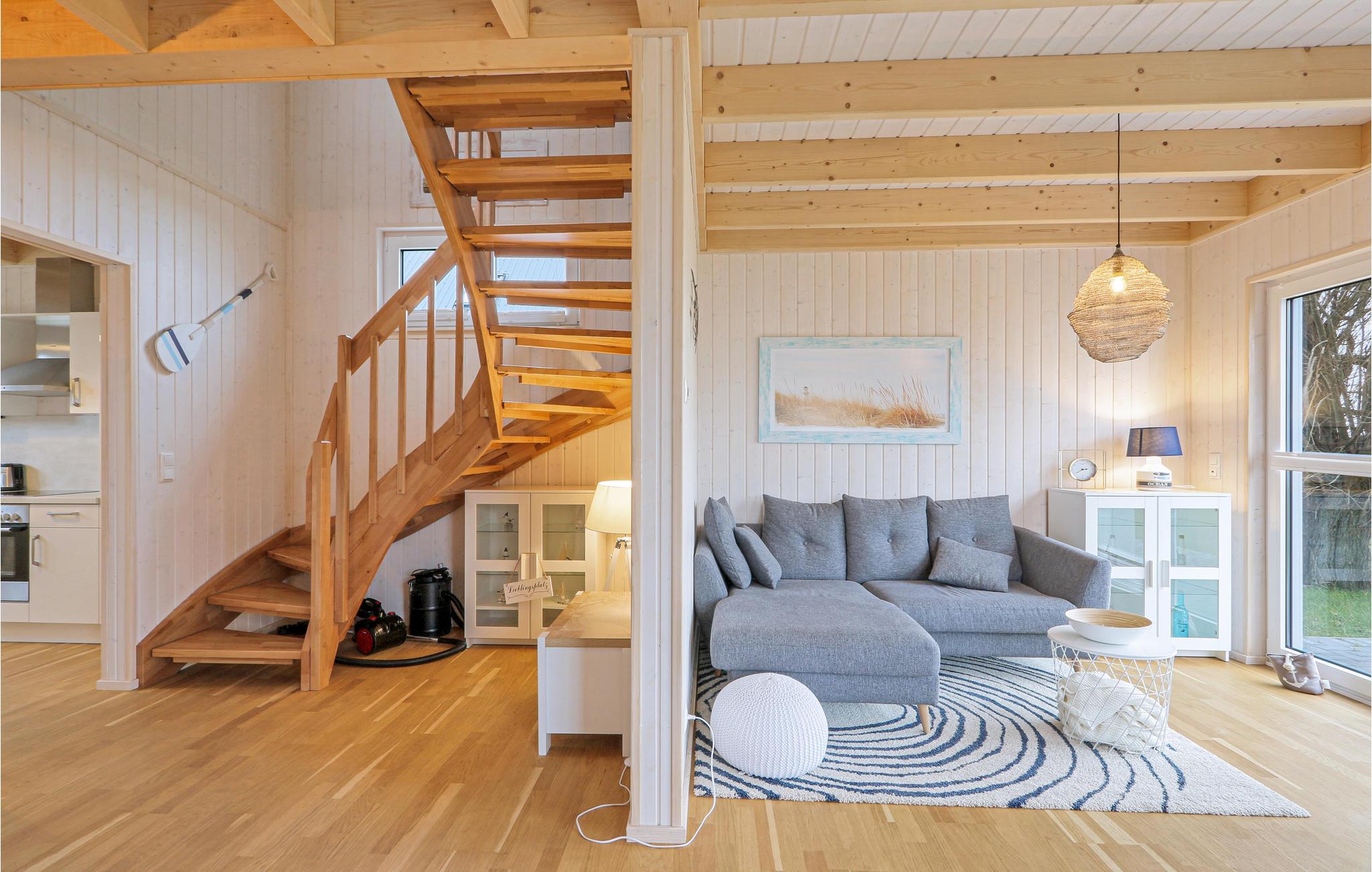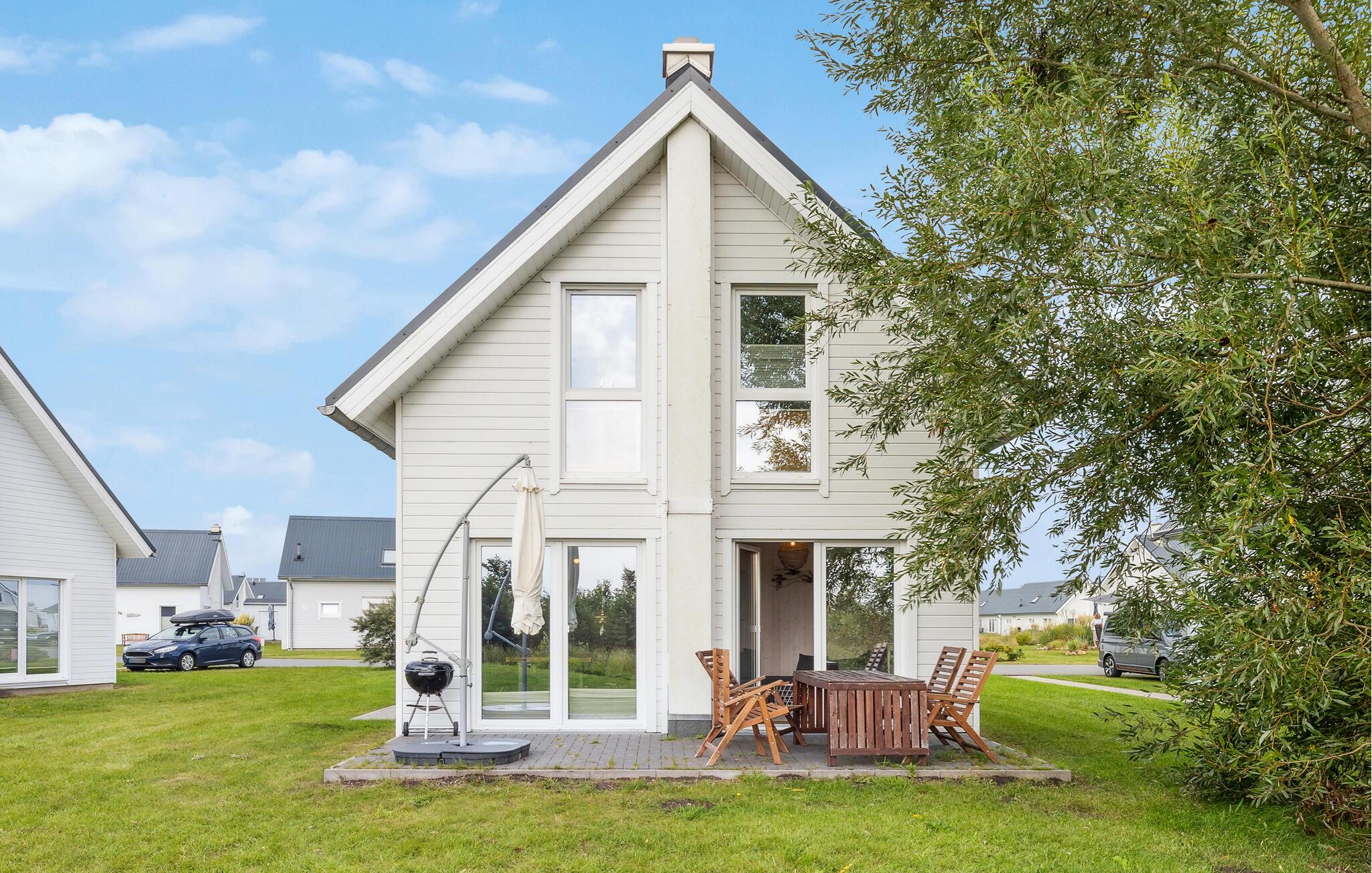 Værelserne strækker sig over to etager. Ovenpå er to soveværelser med kvalitetsboksfjedersenge og et af badeværelserne. I stueetagen er den dejlige lyse åbne opholds- og spiseplads og det andet badeværelse, hvor I kan nyde den private infrarøde varmekabine. Her kan I slappe af efter en lang dag ved Østersøen. Derefter kan I gøre jer komfortable foran brændeovnen i stuen. Eller, hvis vejret er fint, kan I nyde lange aftener på terrassen. Med havemøbler af høj kvalitet og en grill tilbyder det et dejligt sted at slappe af.