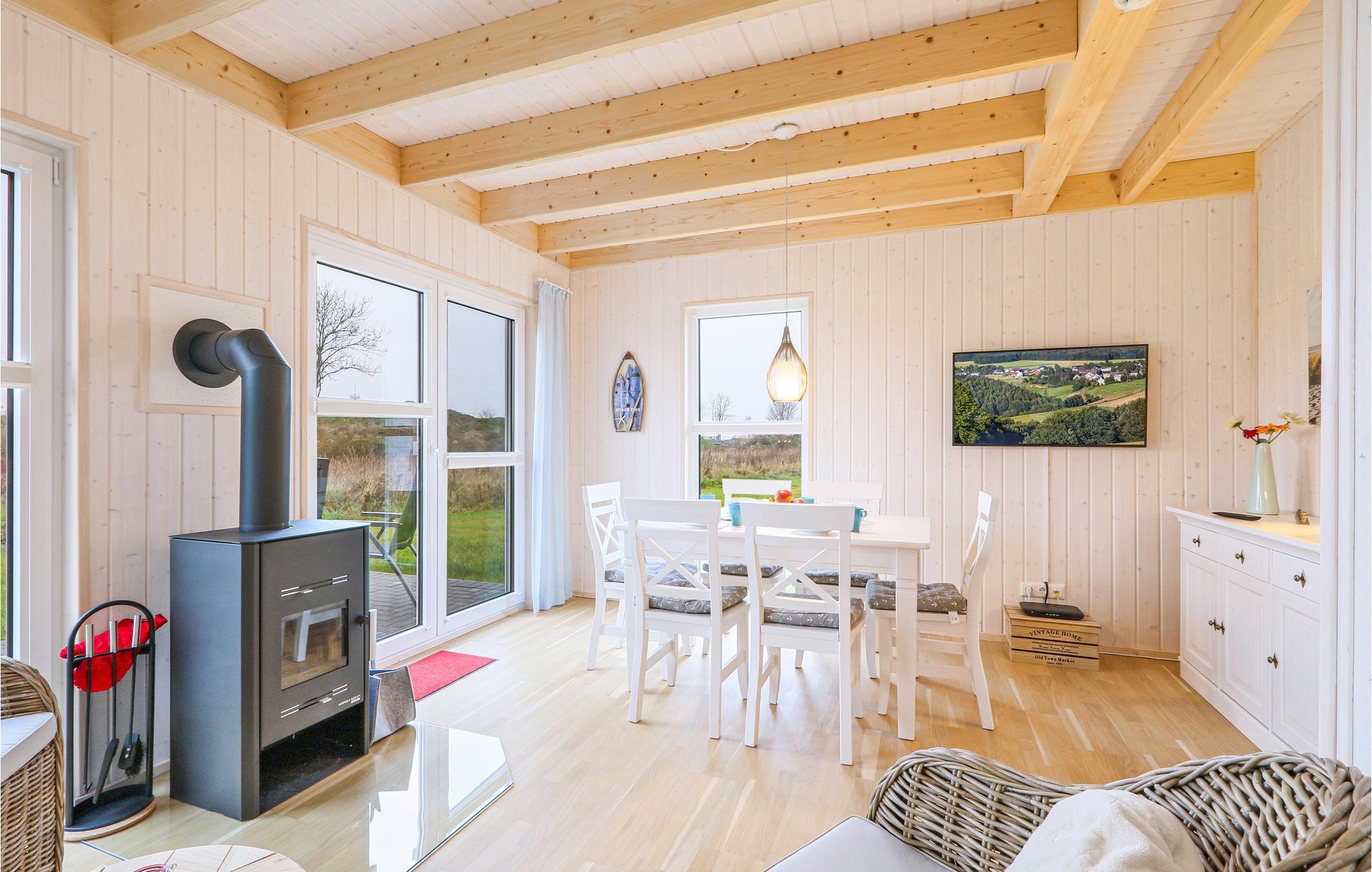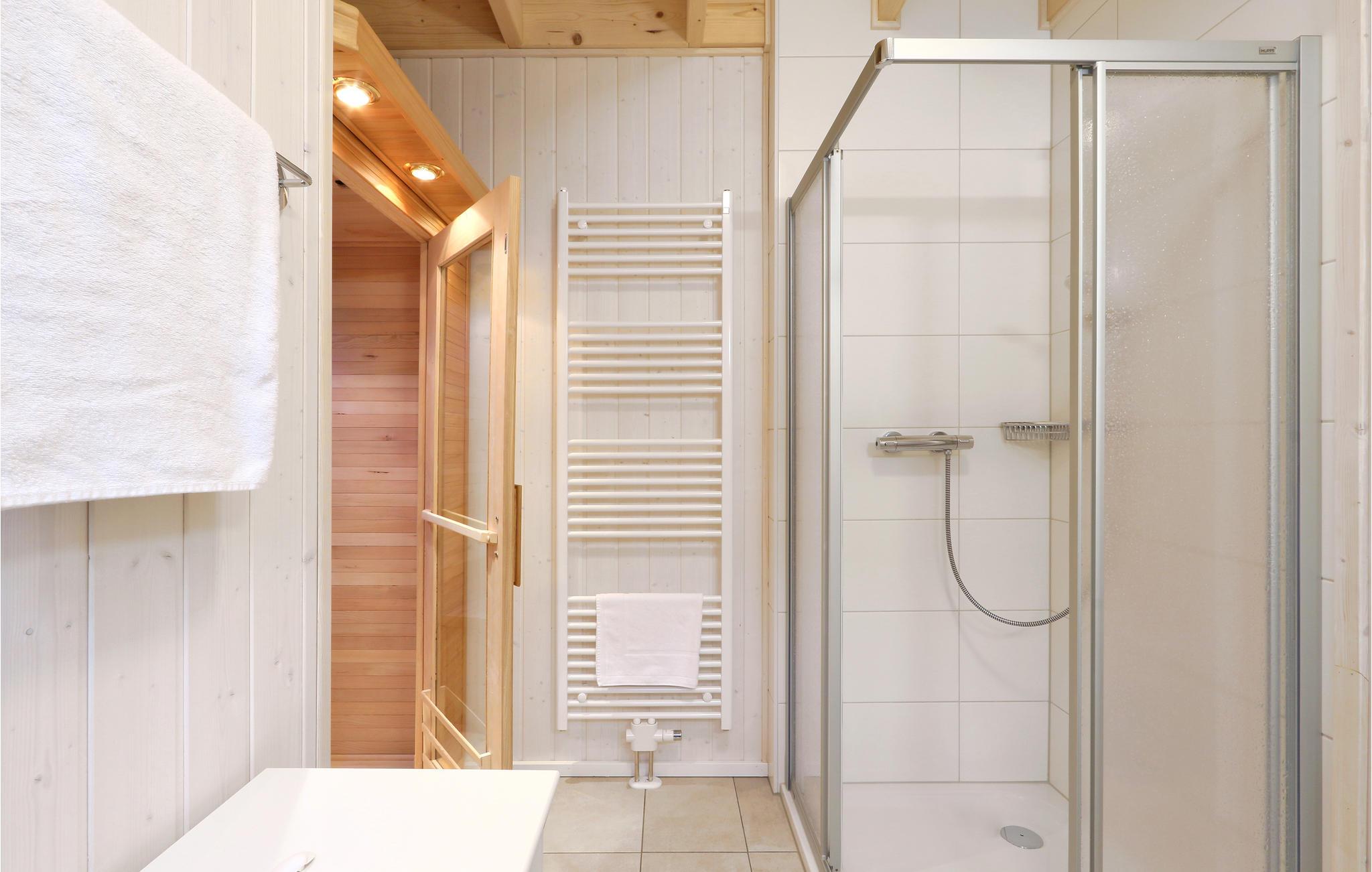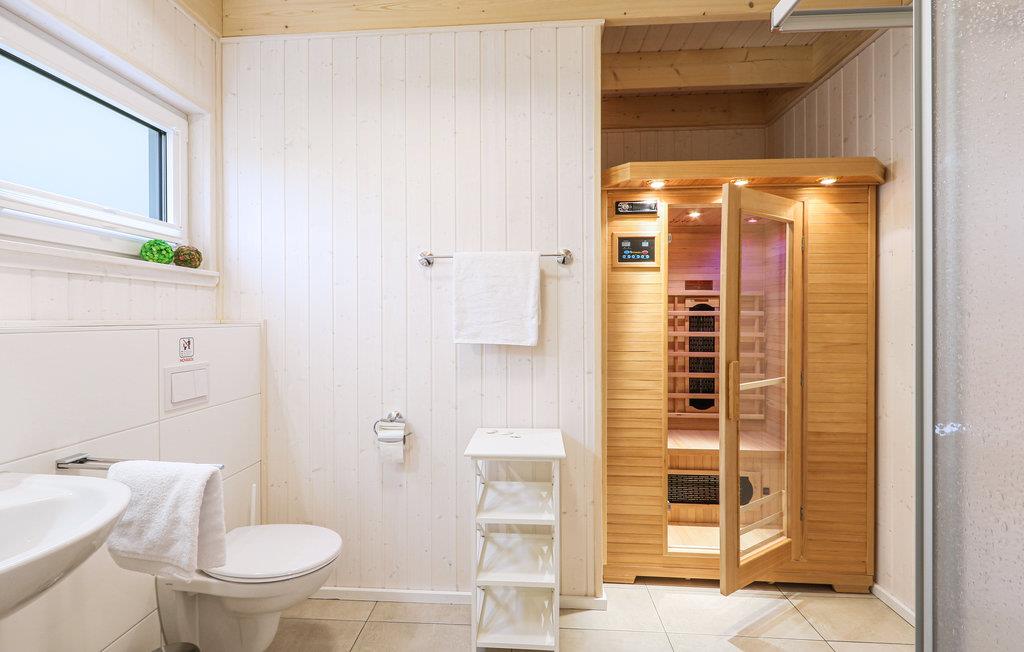 I badeværelset er husets private, infrarøde varmekabine. Her kan du varme dig efter en lang tur på Østersøen. Brændeovnen i stuen giver en hyggelig atmosfære. Magenta TV er også tilgængeligt i dette feriehus.