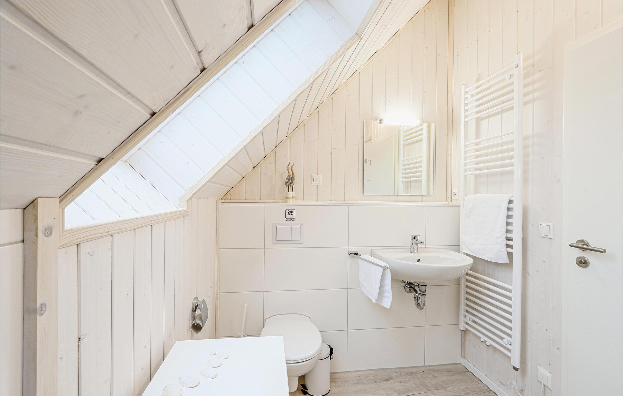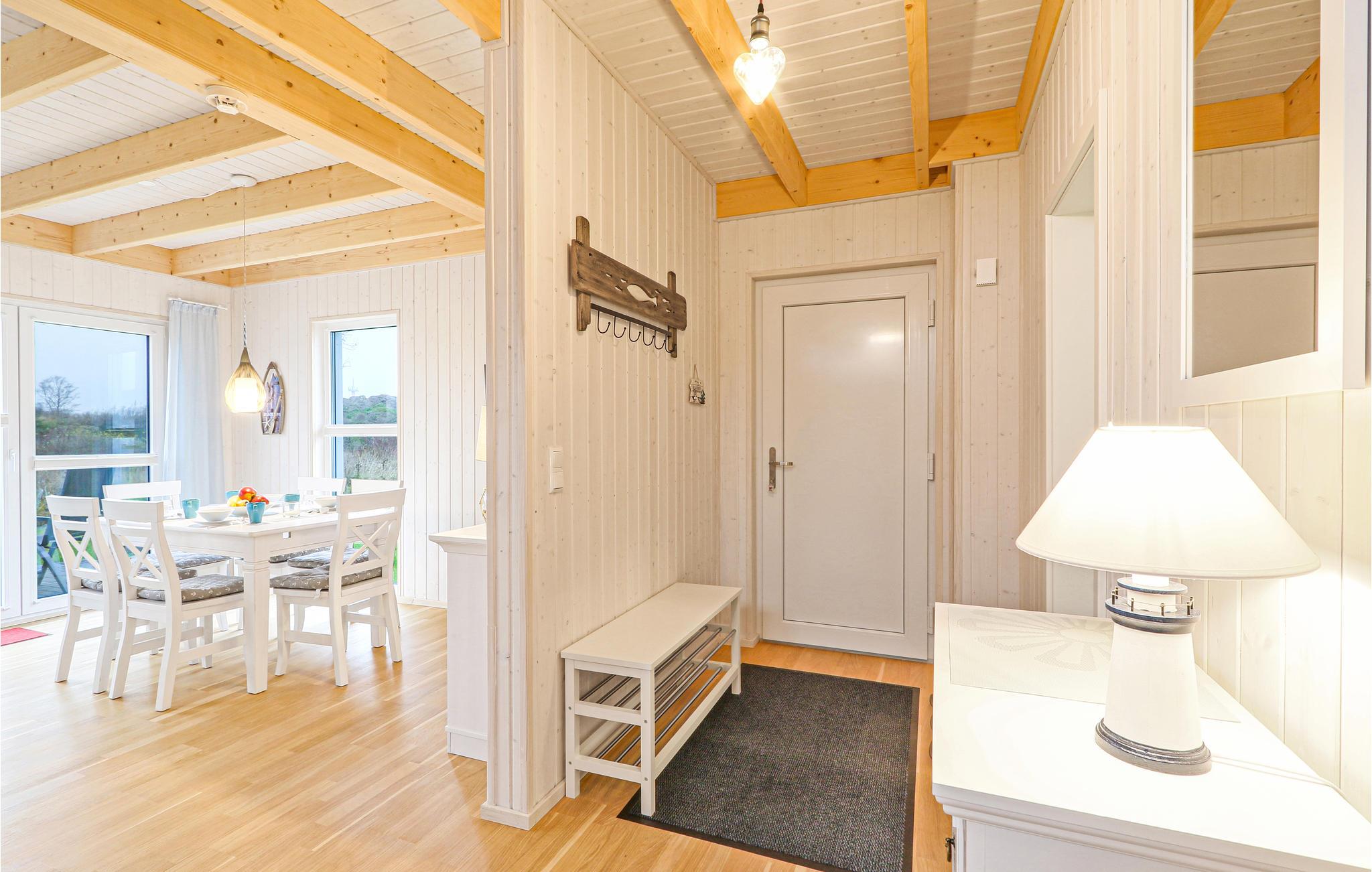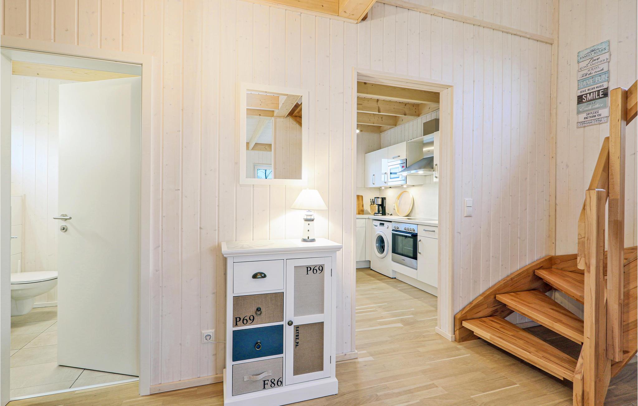 I badeværelset er husets private, infrarøde varmekabine. Her kan du varme dig efter en lang tur på Østersøen. Brændeovnen i stuen giver en hyggelig atmosfære. Magenta TV er også tilgængeligt i dette feriehus.