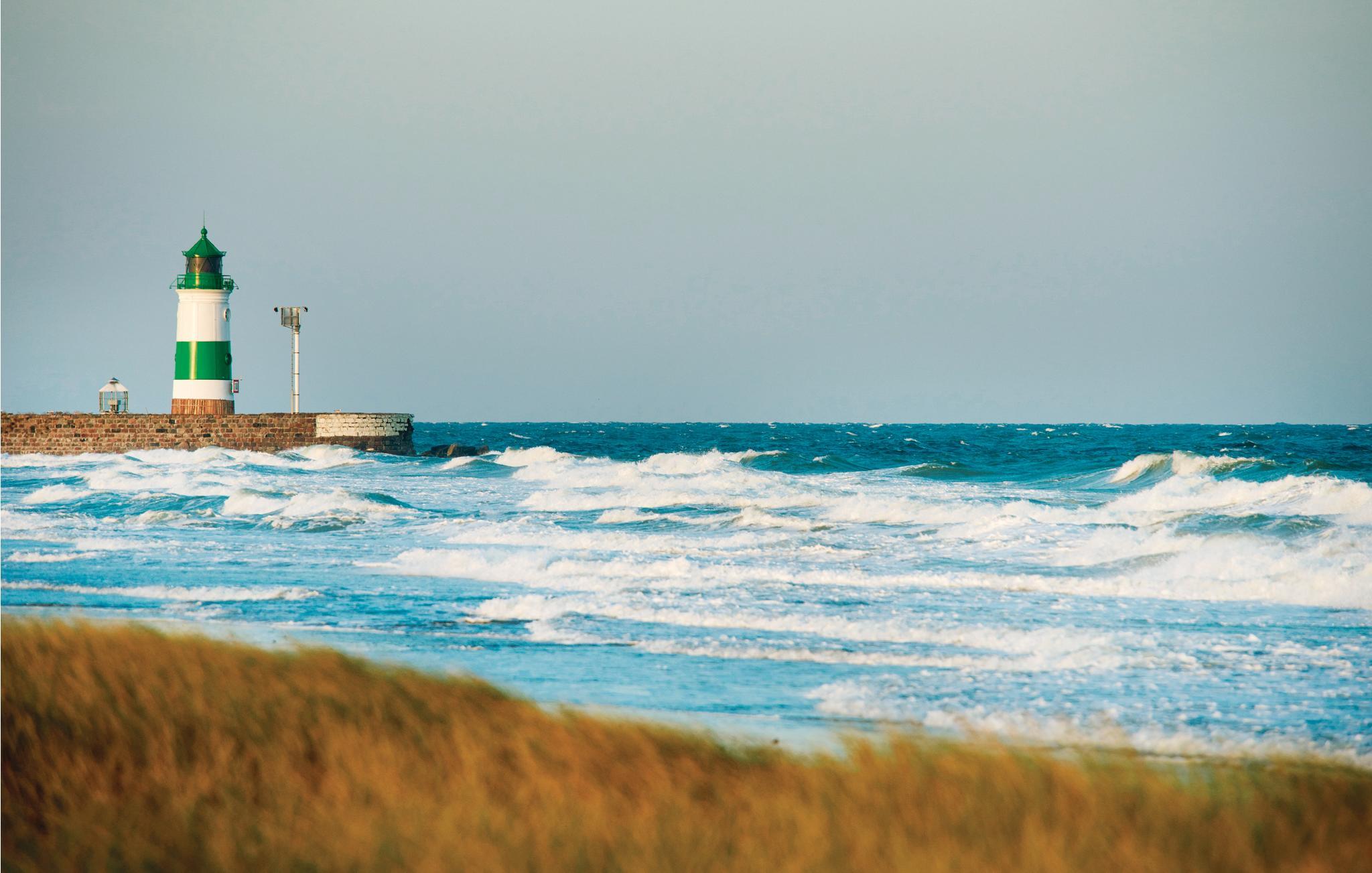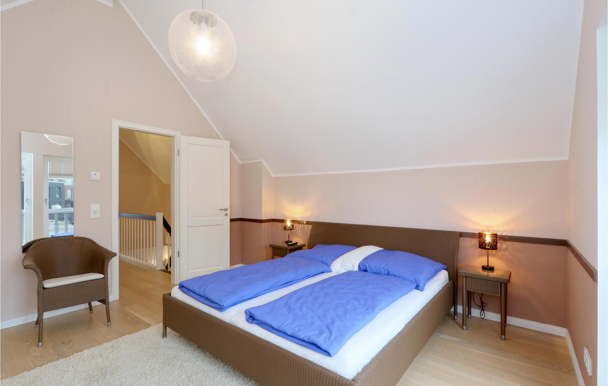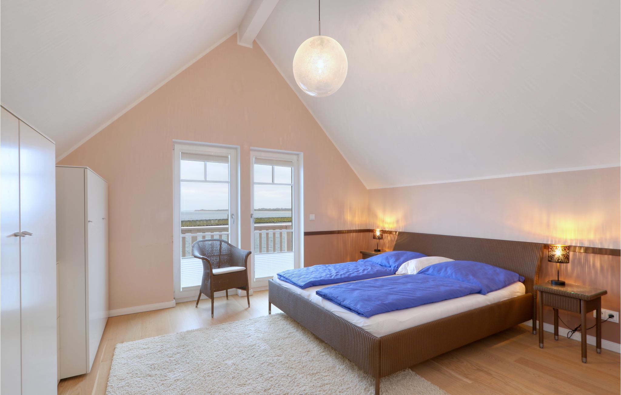 Landtungen strækker sig langt ud i Østersøen. Kun få feriehuse måtte bygges her. Indretningen er moderne og hyggelig: dagligstuen med luksuøst, stort køkken, hyggelig kamin og førsteklasses sofalandskab blev bevidst holdt åben, så sol og lys gennemstrømmer hele huset.