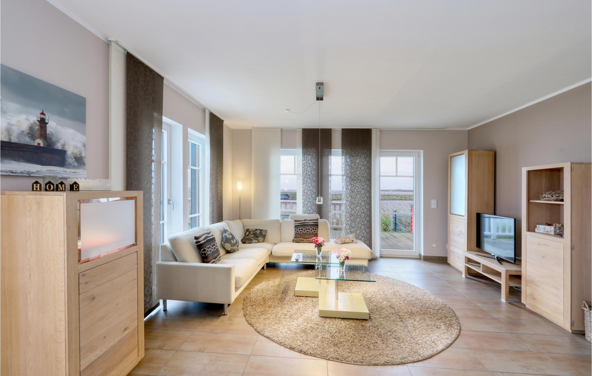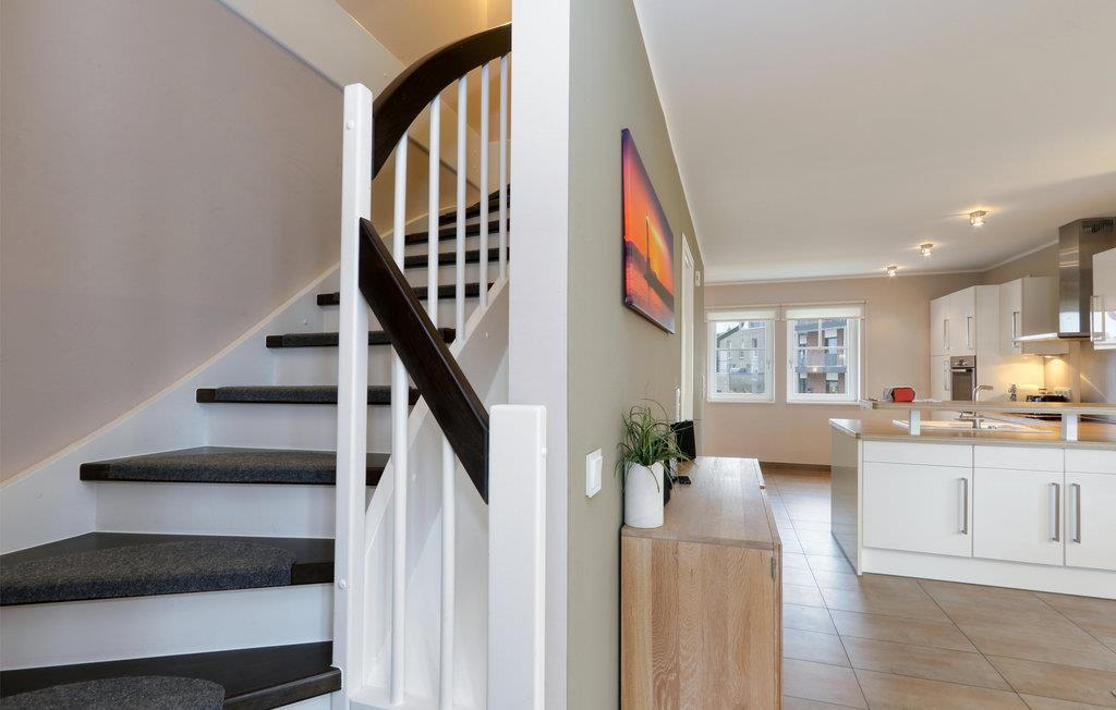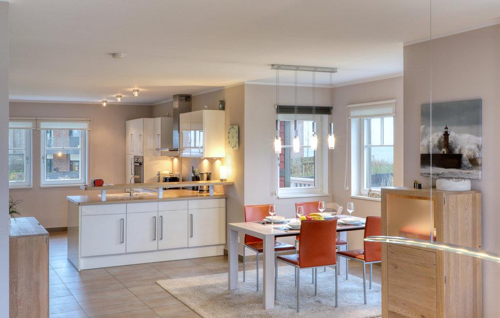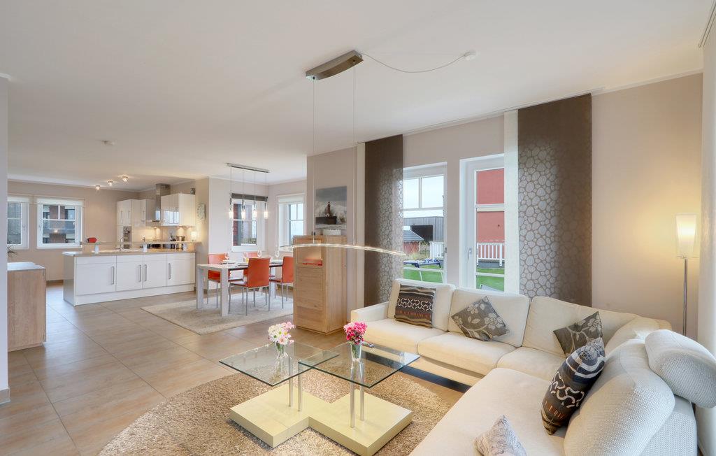 Landtungen strækker sig langt ud i Østersøen. Kun få feriehuse måtte bygges her. Indretningen er moderne og hyggelig: dagligstuen med luksuøst, stort køkken, hyggelig kamin og førsteklasses sofalandskab blev bevidst holdt åben, så sol og lys gennemstrømmer hele huset.