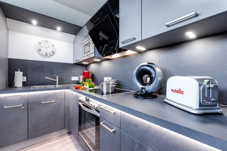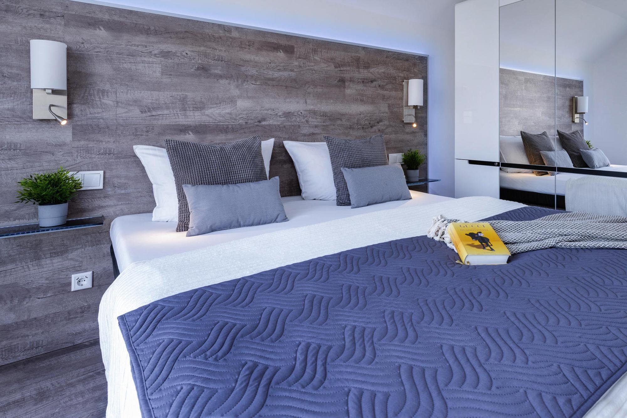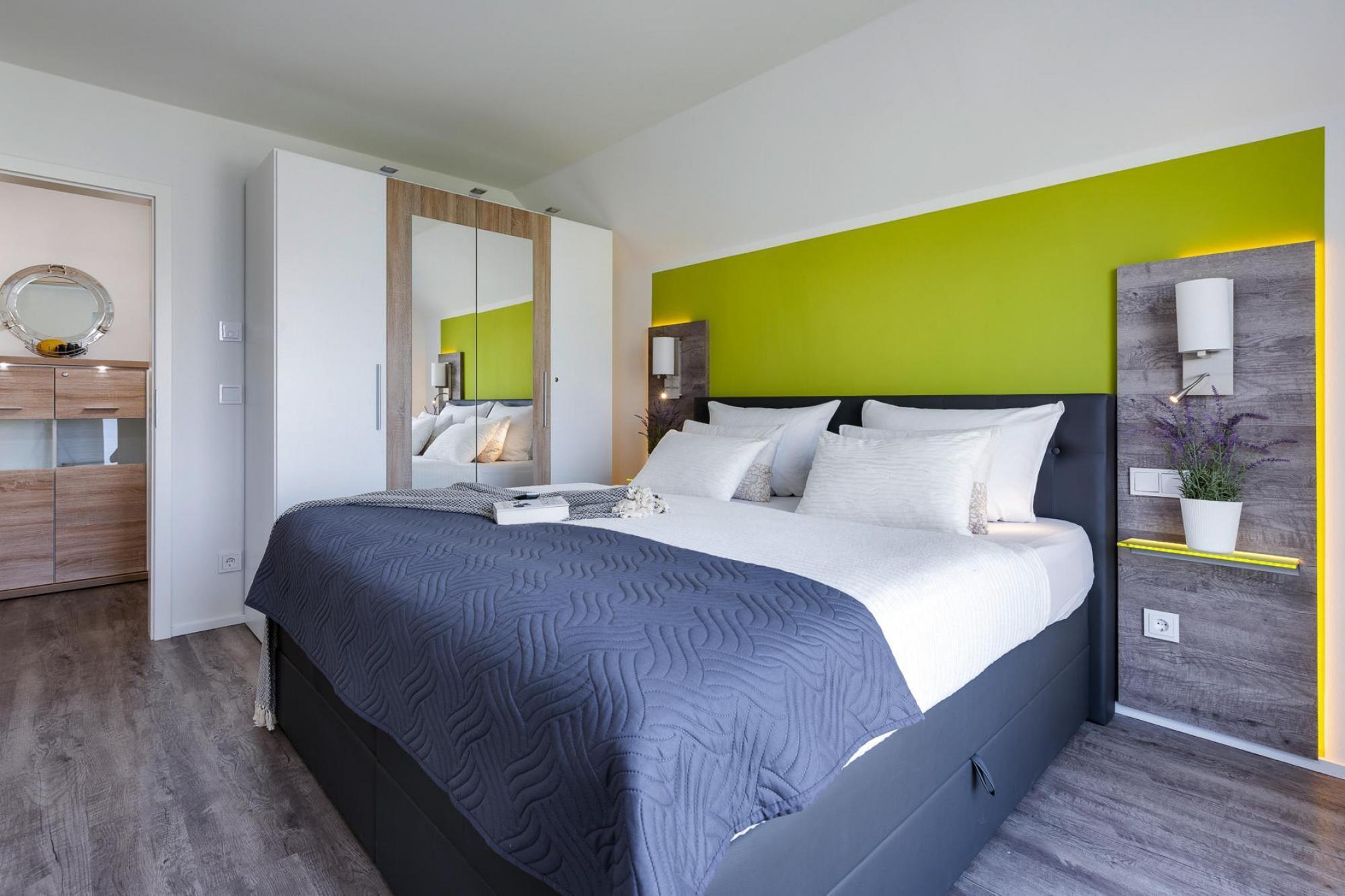 Fantastisk beliggende, moderne og allergivenlig ny lejlighed med to altaner og udstyr, der får feriehjerter til at banke hurtigere. Den lyse stue og spisestue med pejs og gulv til loft vinduer fortsætter ind i det åbne køkken med fremragende udstyr, hvori du kan tilberede alle slags lækkerier. Soveværelserne med udsigt over lystbådehavnen er specielle, hvoraf det ene har vandseng. Et wellness-bad med XXL-bruser og infrarød kabine og to altaner fuldender feriekomforten i denne specielle lejlighed. Et unikt feriested bliver bygget direkte ved Østersøen i den nordøstlige del af Slesvig-Holsten. En stor lystbådehavn, restauranter, caféer, butikker og et unikt udbud af fritidsaktiviteter vil forstærke gæsternes ferie her. Stranden ligger i gåafstand og udover den obligatoriske strandstoleudlejning er der forskellige strandafsnit, herunder en lavvandsafdeling som et perfekt kite- og windsurfingområde. En legeplads, is- og bagervogn, frisk fisk direkte fra kutteren, turbåde, kanoudlejning, sejlerskole og bådudlejning fuldender tilbuddet. Enhver, der nyder en rolig ferie tæt på naturen, burde helt sikkert kunne tilbringe en vidunderlig tid her, selvom miljøet og infrastrukturen i feriestedet Olpenitz ved Østersøen i øjeblikket er under konstant forandring på grund af byggeaktiviteter. Dette er der allerede taget højde for i prisberegningen, og der er ingen mangel Detaljer: WiFi Aktiviteter i nærheden: Olpenitz og det omkringliggende område er ideelle til gåture, vandreture og cykling. Et afmærket netværk af cykelstier fører dig til nogle af de smukkeste hjørner af regionen. Men Kappeln er også en gammel fisker- og sejlerby - her kan du hver dag få friskfanget fisk fra Østersøen direkte fra kutteren og selvfølgelig lækker røget fisk fra røgeriet. Sildehegnet i Kappeln, en fælde til den årlige e