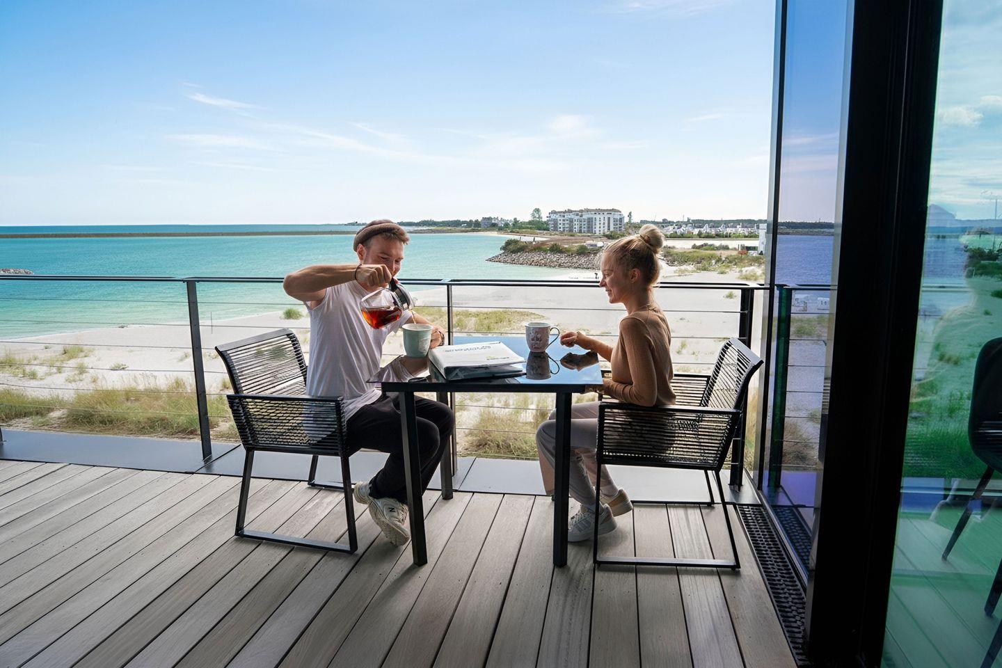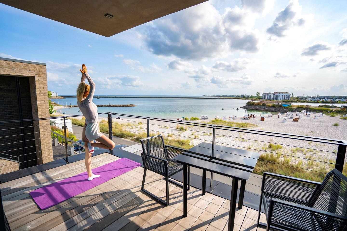 Gooso: Stilvolles Designapartment mit großem Sonnenbalkon direkt am Ostseestrand