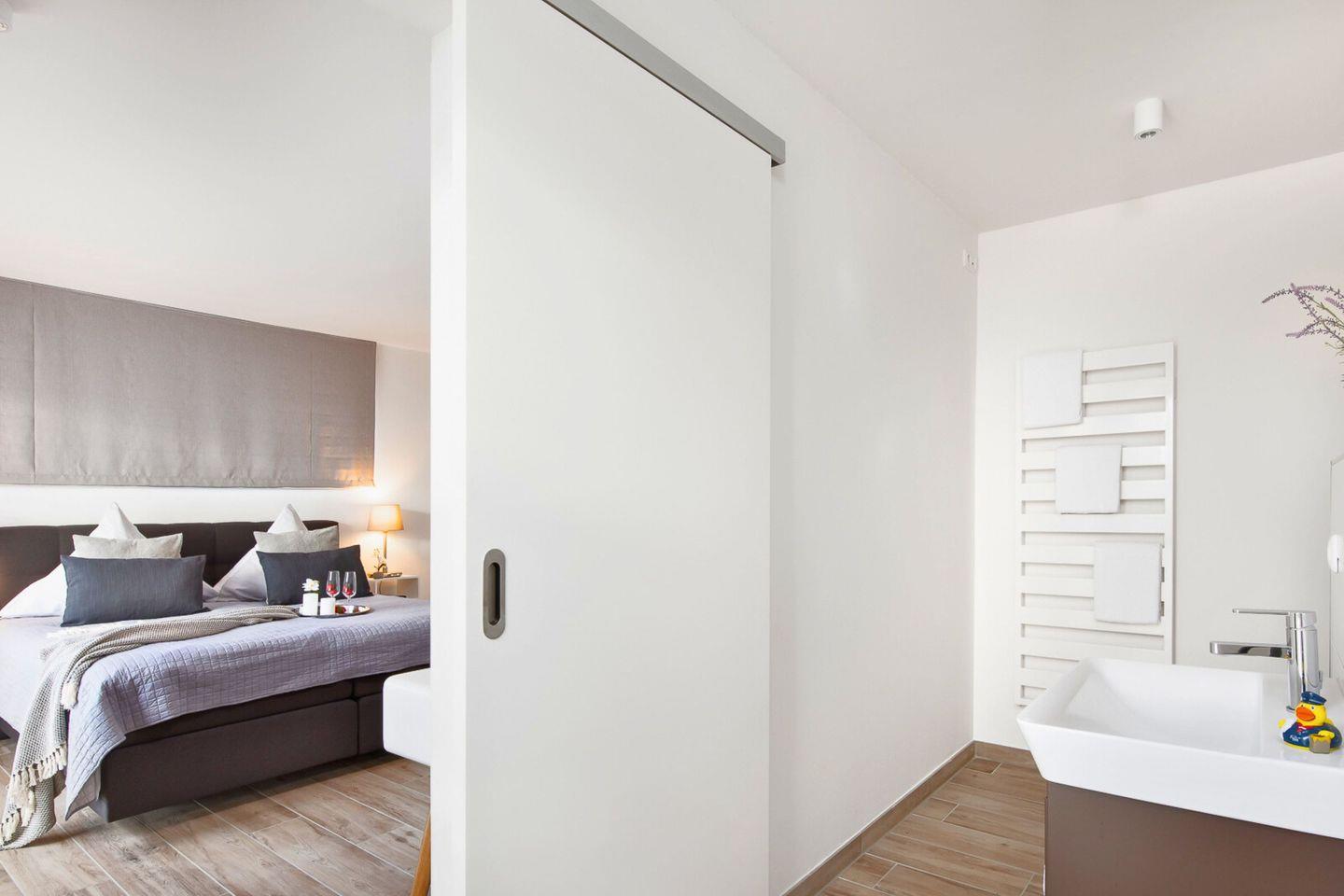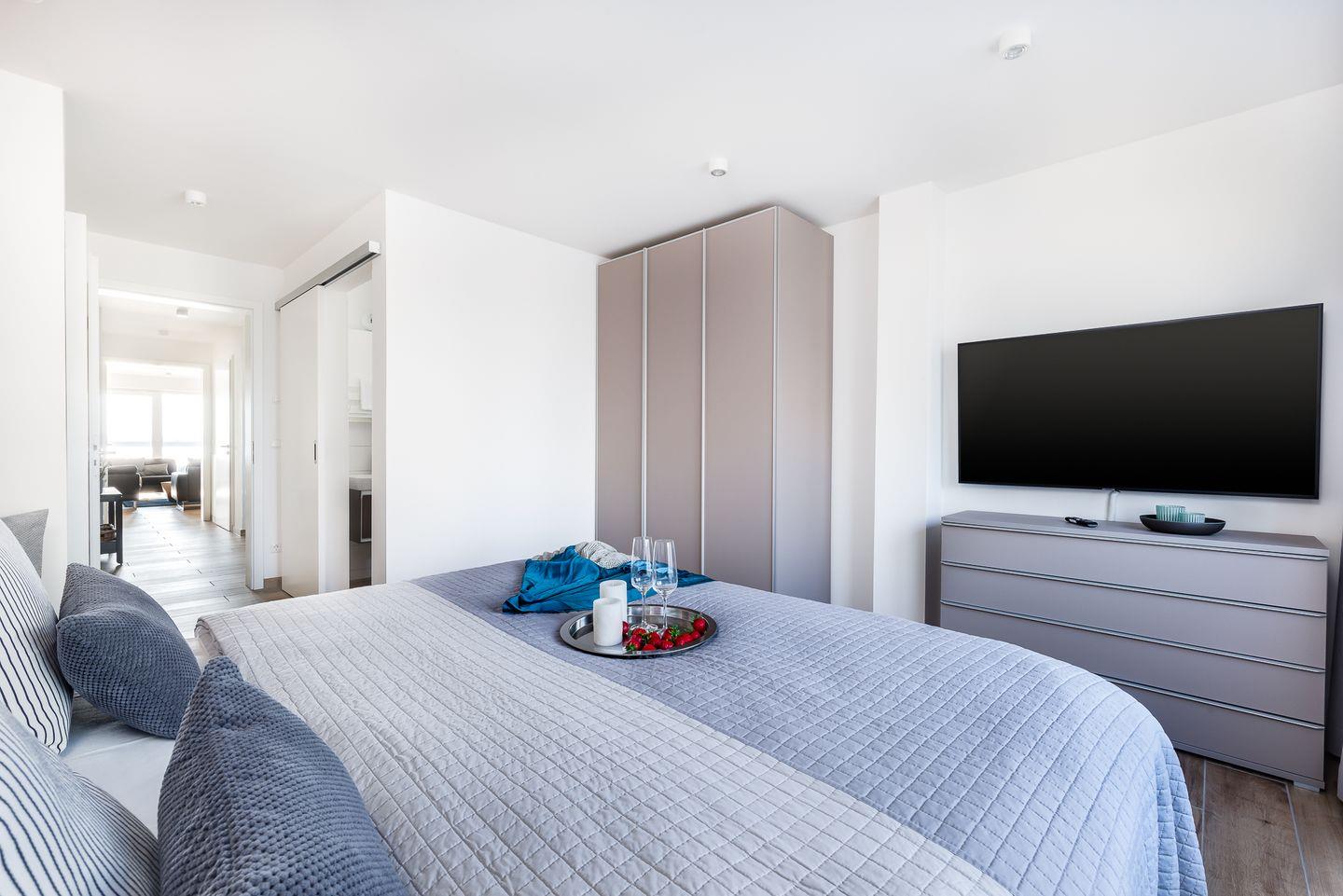 Die Ostsee-Ferienwohnung "Sea 65 Plus" besticht durch Komfort und hochwertige Ausstattung auf zwei Ebenen. Sie beherbergt drei stilvolle Schlafzimmer, perfekt für größere Familien oder Gruppen bis zu 6 Personen. Jedes Schlafzimmer verfügt über ein eigenes Badezimmer, einschließlich einer frei stehenden Whirlwanne mit einzigartigem Wasserblick im Obergeschoss.