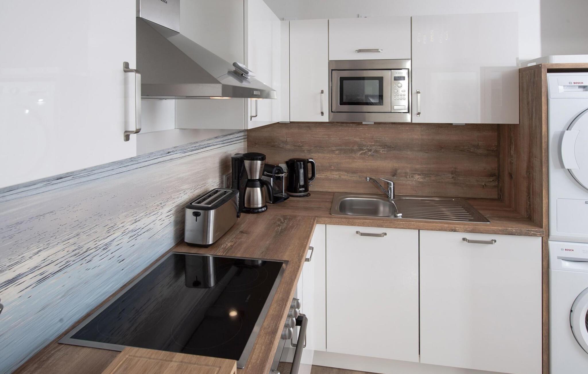 På ferien er der tid til kreativ madlavning, det fuldt udstyrede køkken-alrum lader intet tilbage at ønske.