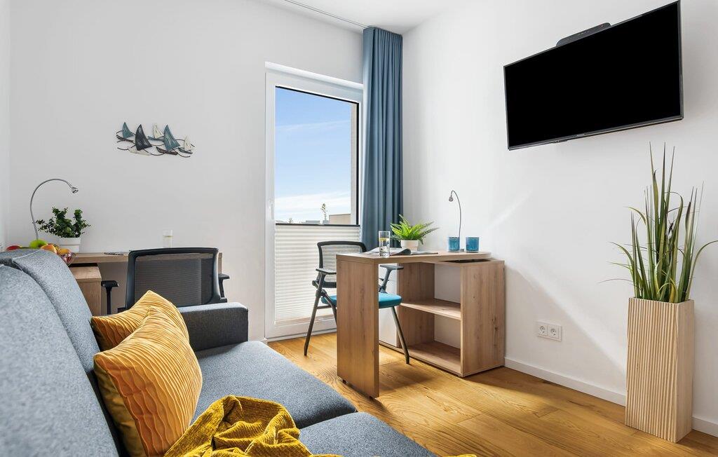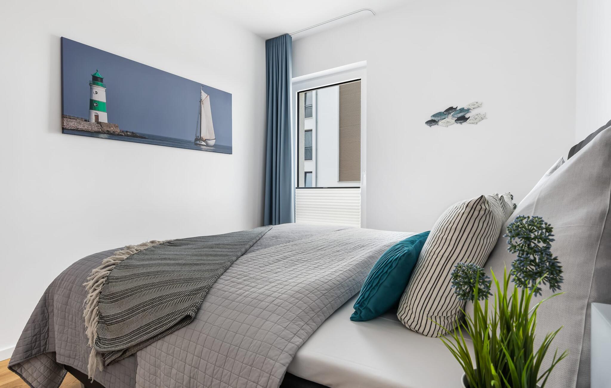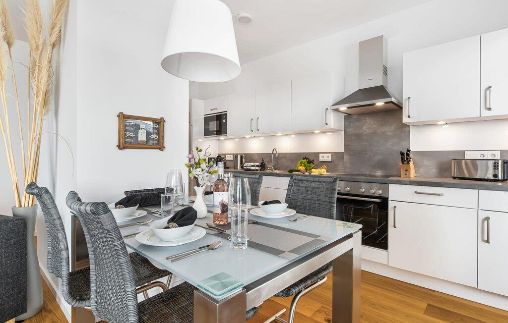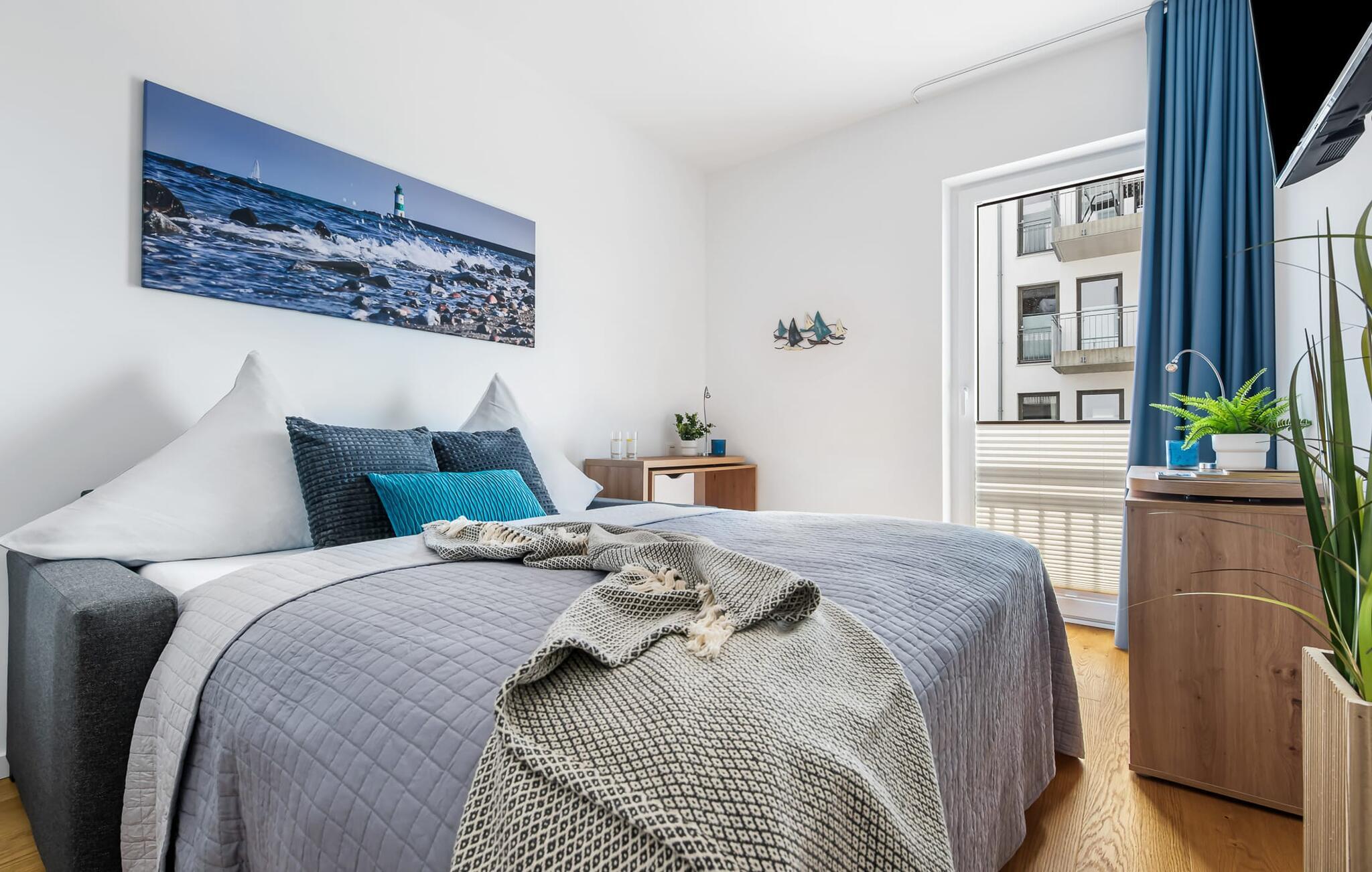 OSTSEETRÄUMCHEN imponerer på den ene side med sin drømmeagtige og rolige beliggenhed, og på den anden side med sin sofistikerede og maritime stemning, som handler om komfort. Med sin gulv-til-loft vinduesfront og den store tilstødende altan er den åbne stue/alrum lejlighedens hjerte. At komme ind her og straks føle sig hjemme er én ting. At se ud over havet fra vinduet eller balkonen og slappe af er ren afslapning og afslapning! Hverdagen bliver mere og mere fjern.
