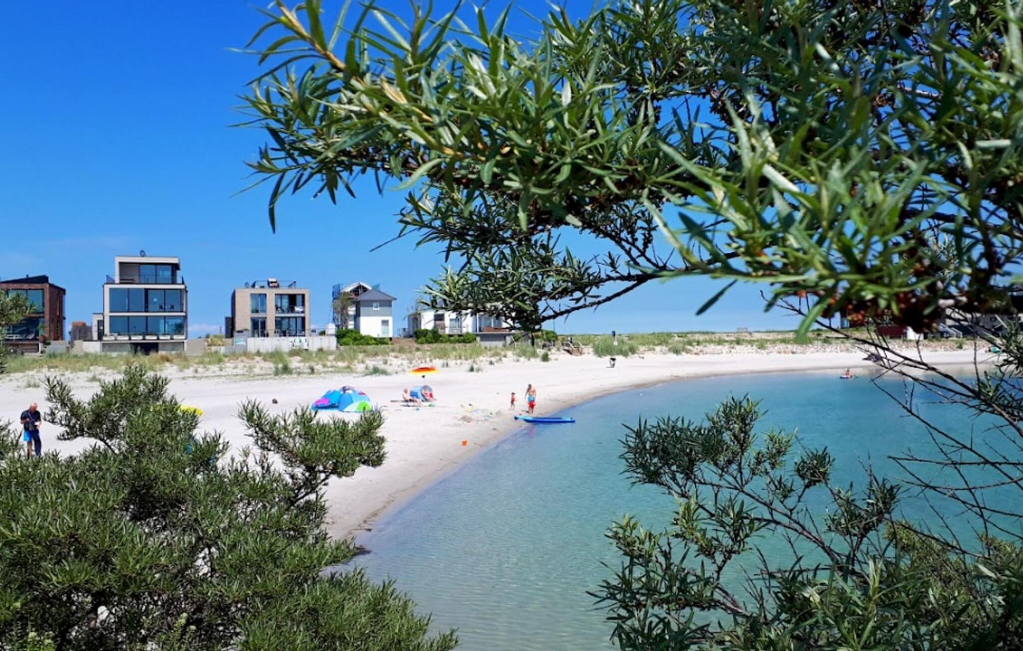Sandstranden Weidefelder med kiosk, restaurant og strandstole ligger i gåafstand og er et attraktivt rejsemål på alle tider af året. Havnepromenaden med sine butikker og restauranter ligger også kun få minutters gang væk.