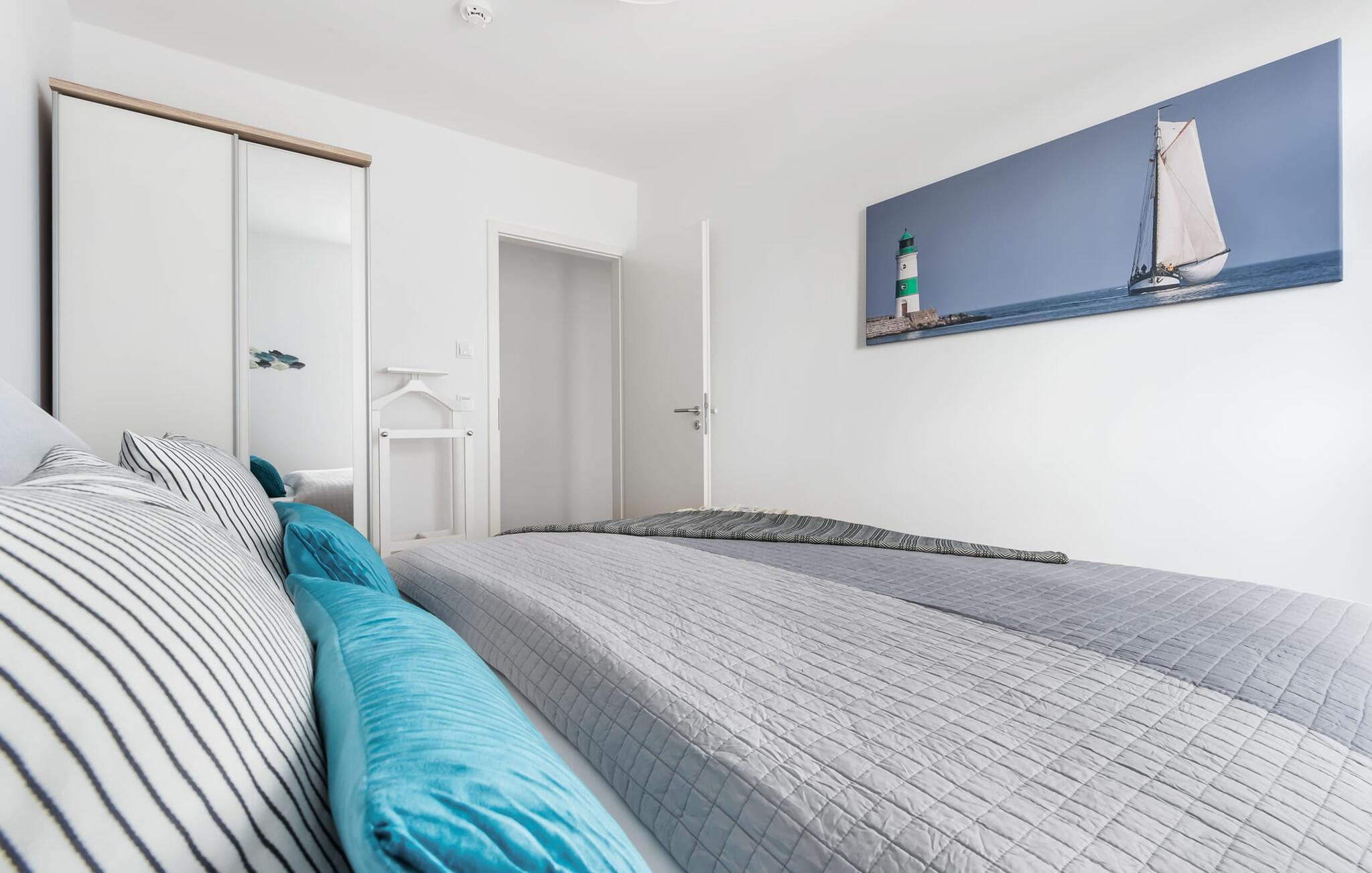 Den stilrene og hyggelige indretning fortsætter i begge soveværelser, som også har vinduer fra gulv til loft. I det første soveværelse kan du gøre dine ØSTERSØDRØMME til virkelighed i en dobbeltseng med boxmadrasser. Det andet soveværelse kan bruges multifunktionelt. En stor sovesofa er tilgængelig for afslappende nætter. To kommoder kan omdannes til fuldgyldige arbejdsstationer for at bruge produktive eller kreative timer. Eller du kan bruge kommoderne som opbevaringsplads og bare nyde din ferie! Der er et andet fjernsyn tilgængeligt her til underholdning.