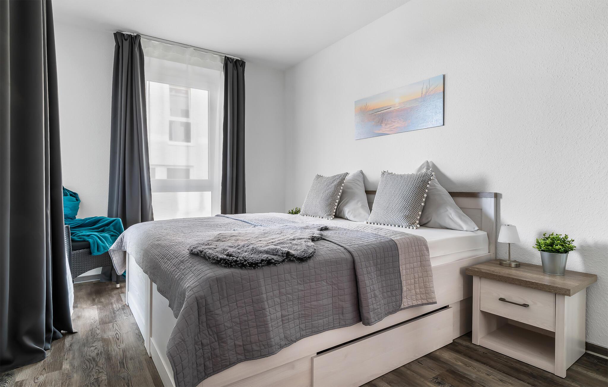Stuelejligheden har to hyggelige soveværelser. Det første soveværelse er indrettet med en komfortabel dobbeltseng og eget fjernsyn. I det andet soveværelse finder I to behagelige enkeltsenge. I stuen står der en sovesofa med lamelramme til rådighed, som giver ekstra plads til to ekstra gæster.