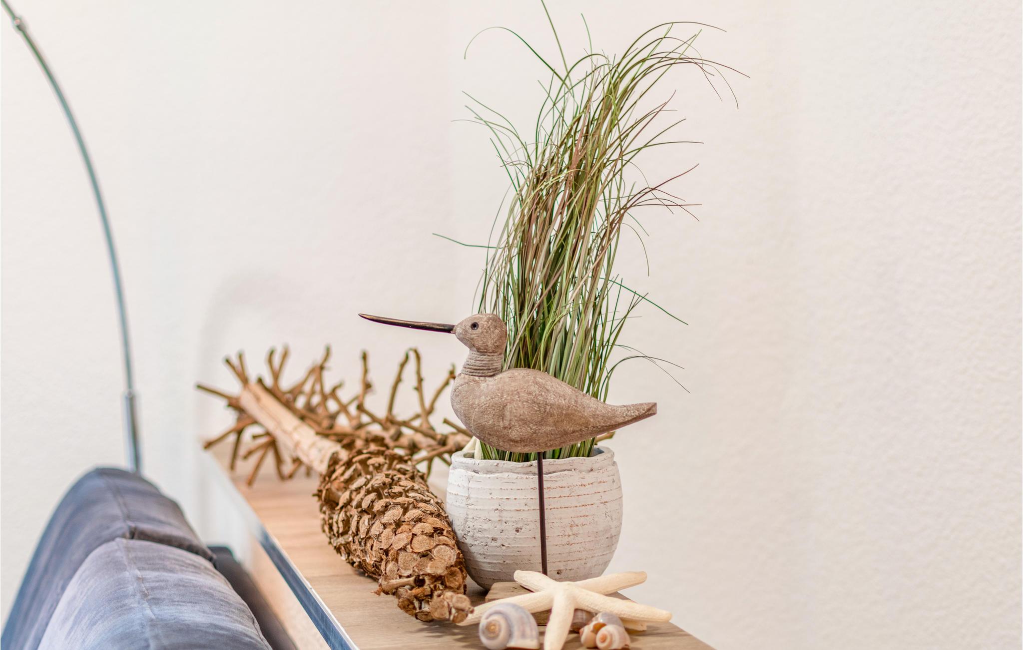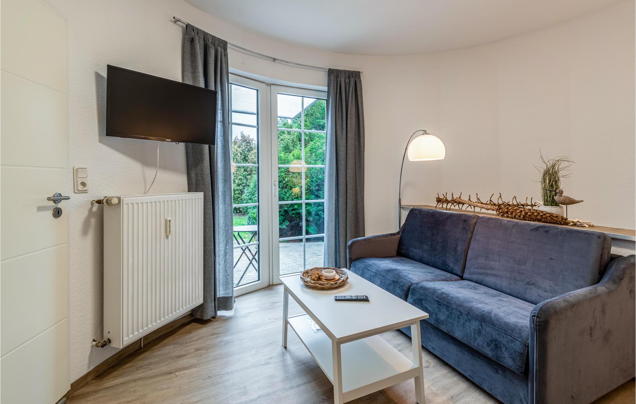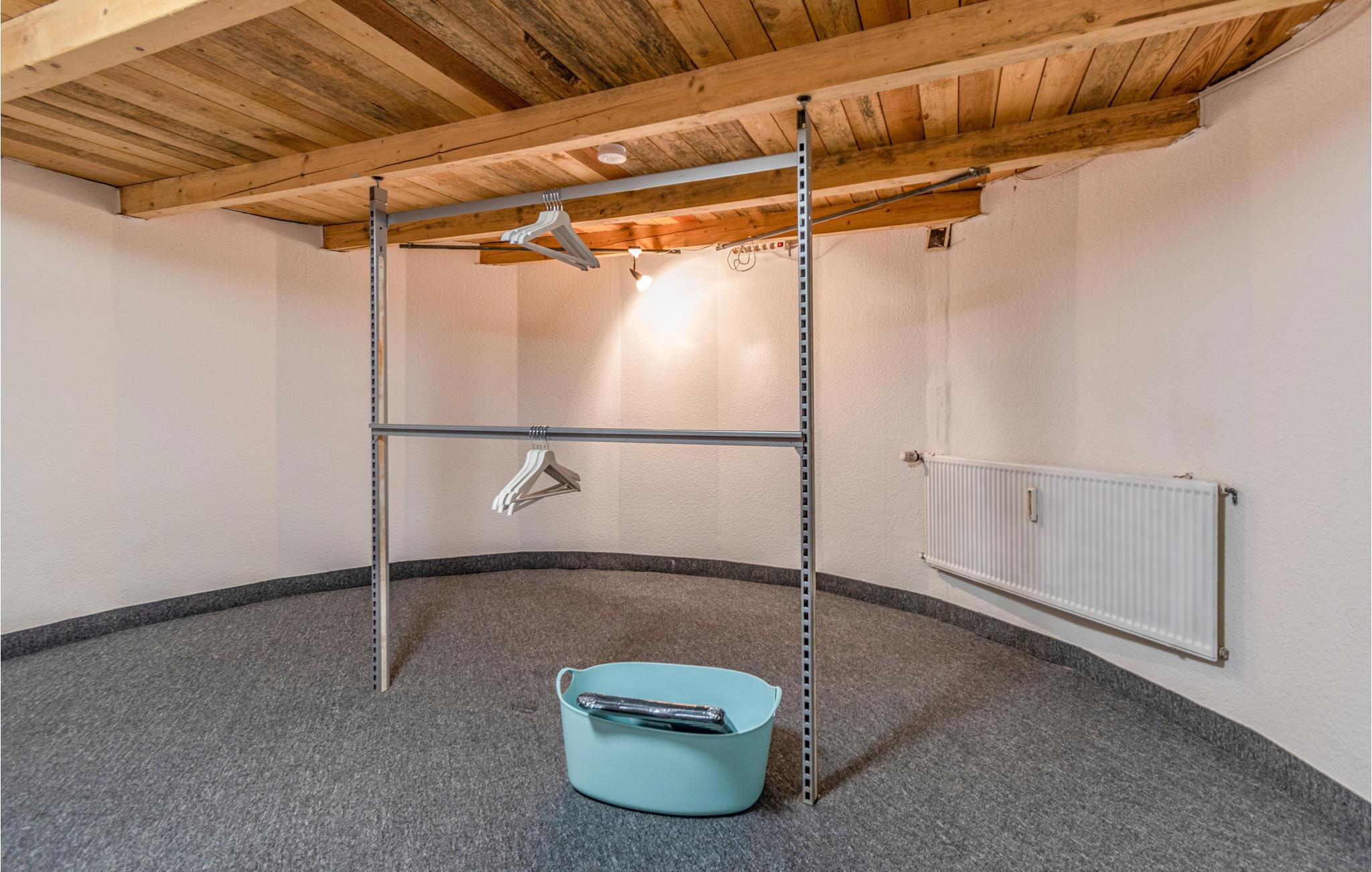 Gennem en lille gang med en terrassedør når I et udhus. Her er stuen med en sofa, der kan konverteres til en seng. Herfra kommer I også til terrassen, der vender mod syd. En grill er tilgængelig og inviterer til sociale aftener udendørs. Den indhegnede have er direkte forbundet og tilbyder også et hyggeligt sted for kæledyr. Bemærk, at kæledyr kun kan være i stueetagen. Feriehuset tilbyder et rummeligt opbevaringsrum under stuen, hvor I f.eks. kan opbevare kufferter.