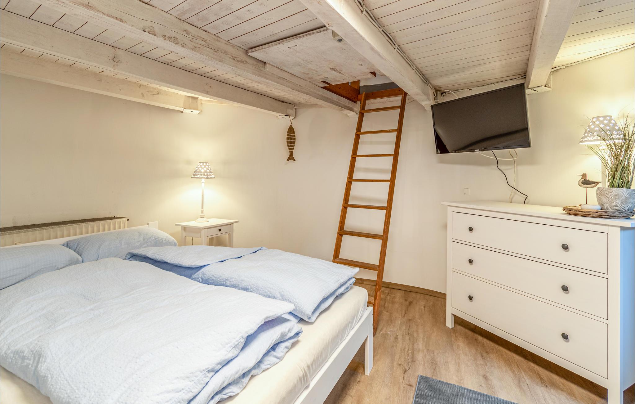 Feriehuset kan rumme fire personer. Køkkenet, stuen og badeværelset er i stueetagen. Fra det veludstyrede køkken skal I klatre via en stige op i de moderne og komfortabelt indrettede soveværelser, som er placeret på bygningens øverste og nederste etage. I kan kun nå soveværelserne via stigen, så huset ikke er egnet til små børn eller bevægelseshæmmede. Det nederste soveværelse er især hyggeligt på grund af den lave lofthøjde og træbjælker i loftet.