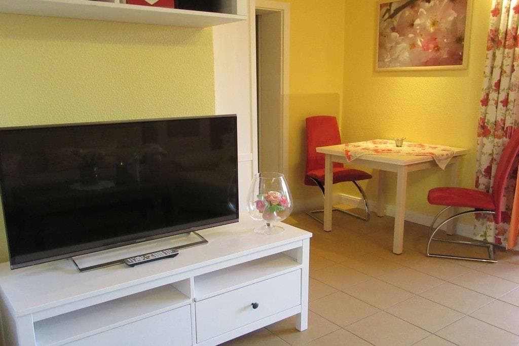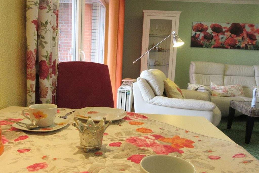 Ferielejligheden Marielund ligger i stueetagen i Otterndorf ved Nordsøen på adressen Fasanenstraße 13a, en rolig villavej tæt på stranden og bymidten. Lejligheden er moderniseret, nyindrettet og meget indbydende. Her kan du nyde en afslappende ferie i Otterndorf ved Nordsøen til en overkommelig pris. Der er møntvaskemaskine og tørretumbler (EURO1) til rådighed. Ferielejligheden Marielund blev fuldstændig renoveret i foråret 2014, badeværelset blev renoveret, og alt var nyindrettet. Vi har kærligt indrettet denne smukke lejlighed. Du vil føle dig meget komfortabel der. Lejligheden har to terrasser! Otterndorf huser lægepraksisser inden for næsten alle specialer samt et hospital. Discountbutikkerne Lidl, Penny og Aldi ligger i Otterndorf, ligesom Rossmann og supermarkedet Marktkauf. Kystbyen Cuxhaven ligger kun 18 km væk. Derfra kan du besøge øerne Neuwerk og Helgoland. Slutrengøring er ikke inkluderet i den tilbudte pris.