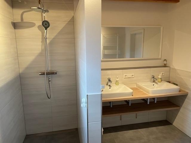 EG: 2 Schlafzimmer mit jeweils einem Doppelbett un 2 Schlafzimmer mit je 2 Einzelbetten. 2 Badezimmer machen auch den Aufenthalt mit mehreren Personen angenehm. Großer Wohnbereich mit Kamin. Angrenzend ist die offene, modern ausgestattete Küche.