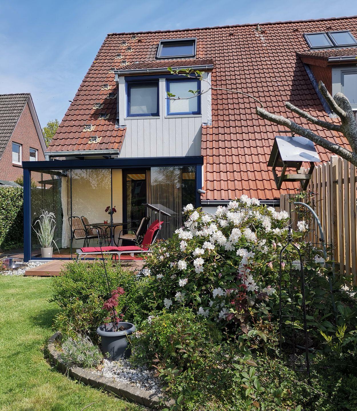 Das gemütlich und modern eingerichtete Ferienhaus „Medemsonne“ für 4 Personen ist in einer ruhigen Sackgasse direkt an dem Fluss Medem gelegen. Über den angrenzenden Fußweg ist die Otterndorfer Altstadt mit den vielen Einkaufmöglichkeiten, Restaurants und Kneipen schnell und bequem zu erreichen. Auch der Strand und die Freizeitanlagen sind nur ca. 1,5 km entfernt. Der großzügige Wohnbereich im Erdgeschoss mit Kaminofen, Essecke und Couchgarnitur lädt zum Verweilen ein. Hier steht Ihnen jeglicher Komfort, wie z. B. Smart-TV, Stereoanlage und WLAN zur Verfügung. Ebenfalls befinden sich die separate Küche, sowie ein Comfort-Gäste-WC im Erdgeschoss. Über eine geschlossene Holztreppe gelangen Sie in das Obergeschoss. Hier befinden sich die beiden Schlafzimmer, sowie das Badezimmer mit Dusche, Wanne und WC und eine Sauna mit 2 Liegen oder 4 Sitzplätzen. Von dem südlichen Schlafzimmer mit Ehebett haben Sie einen herrlichen Ausblick auf die Medem. Das zweite Schlafzimmer ist mit zwei einzeln stehenden Betten und einem Kinderbett ausgestattet. Die Süd-Terrasse erreichen Sie direkt vom Wohnbereich. Seit 2023 ist die Terrasse vollständig mit Glas überdacht und zum Windschutz mit Glastüren versehen. In diesem „Gartenzimmer“ lässt sich auch schon in den Übergangszeiten im Herbst und Frühling bei schönem Sonnenwetter warm und gemütlich verweilen. An den heißen Sonnentagen ist eine variable Verschattung möglich. Für sportliche Aktivitäten steht ein Kanu (Kanadier, 3 Pers. ) zur Verfügung. Der Zugang zur Medem führt durch den südl. Garten direkt zum hauseigenen Bootsanleger. Dieser lädt zum Verweilen am Fluss ein.