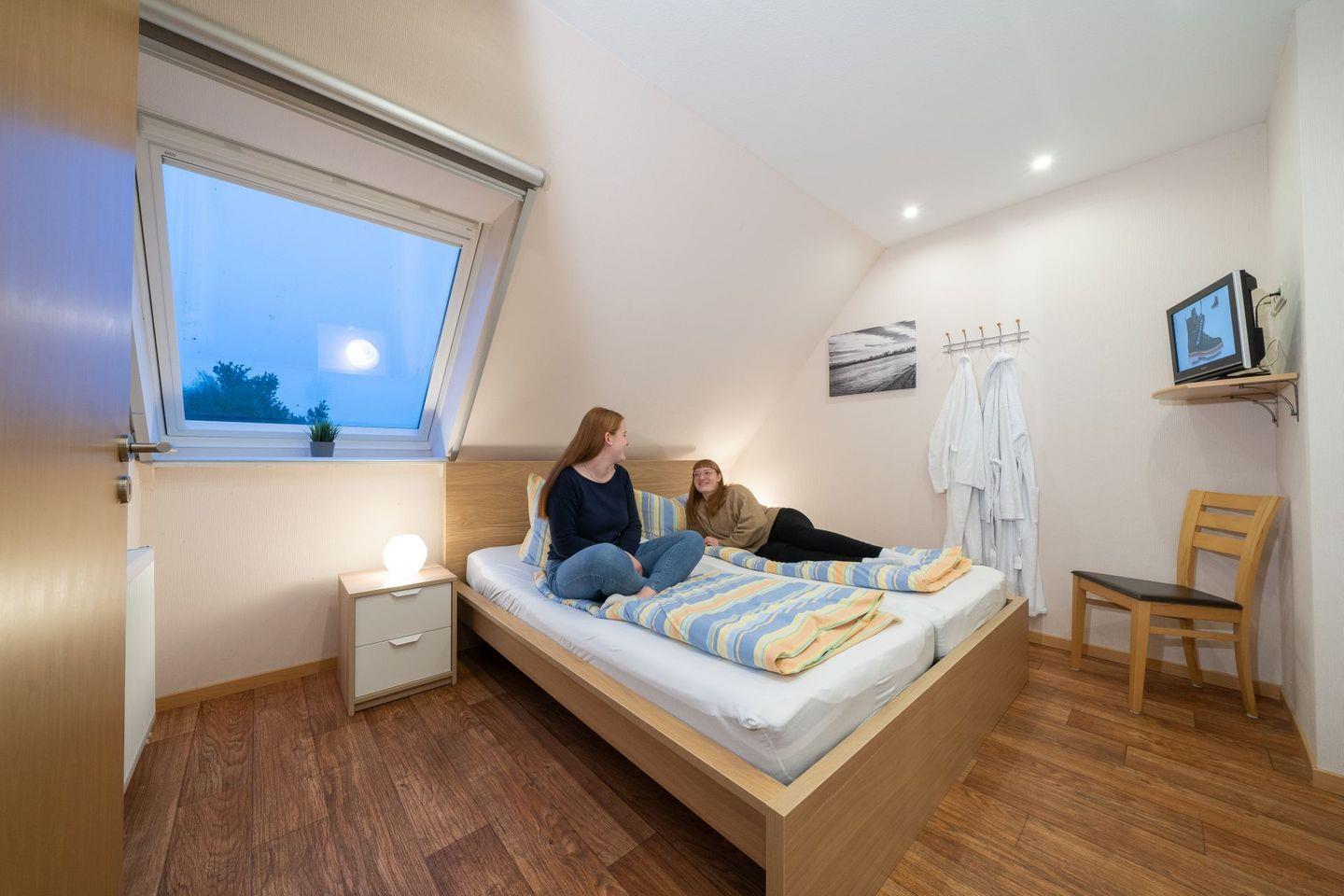 Im Schlafzimmer befinden sich das Ehebett, ein großer Kleiderschrank und der zweite LCD-Fernseher.