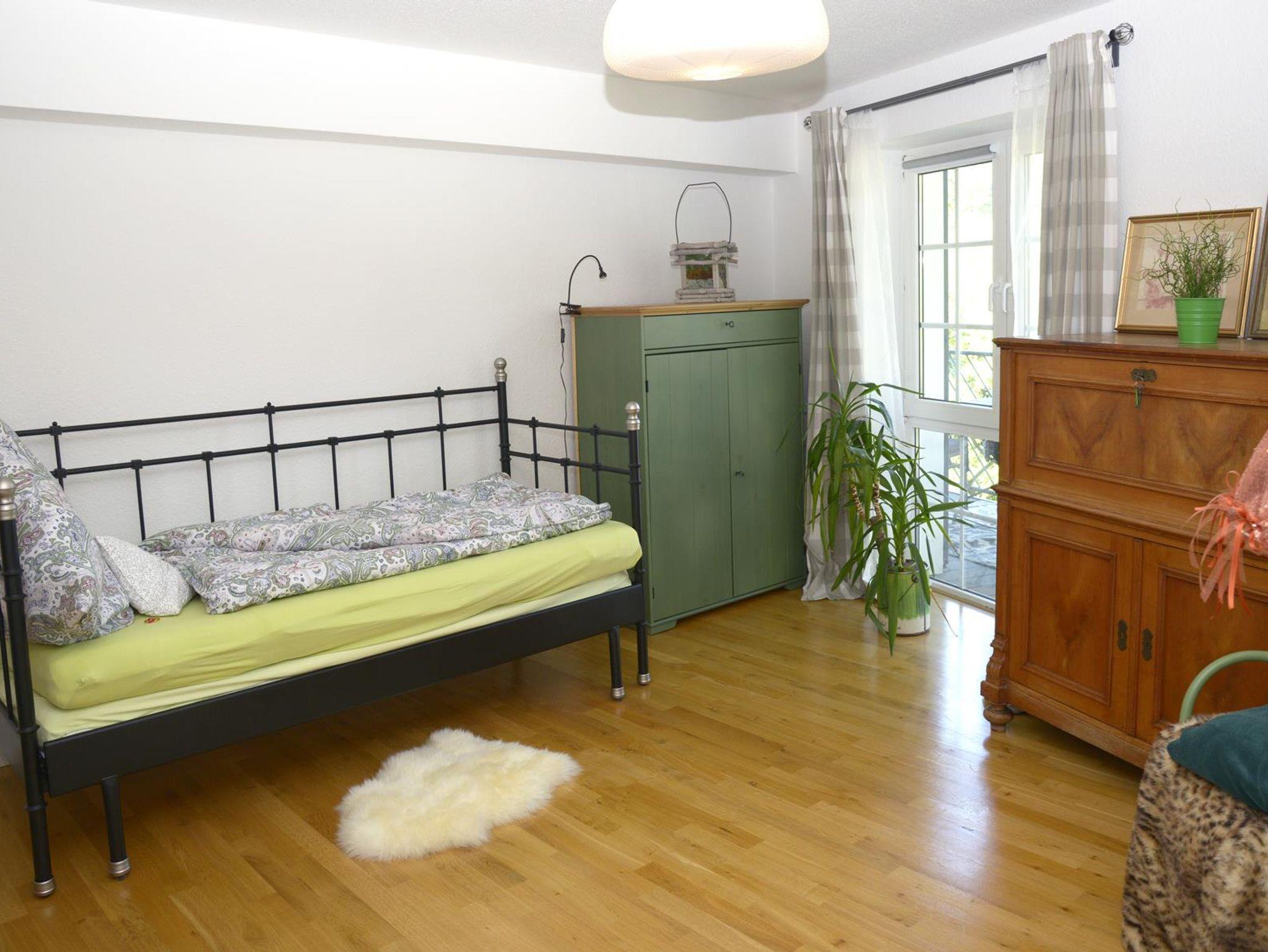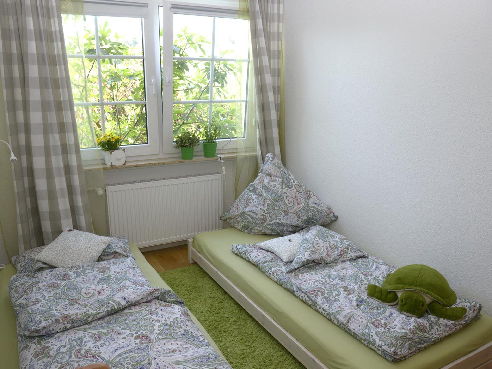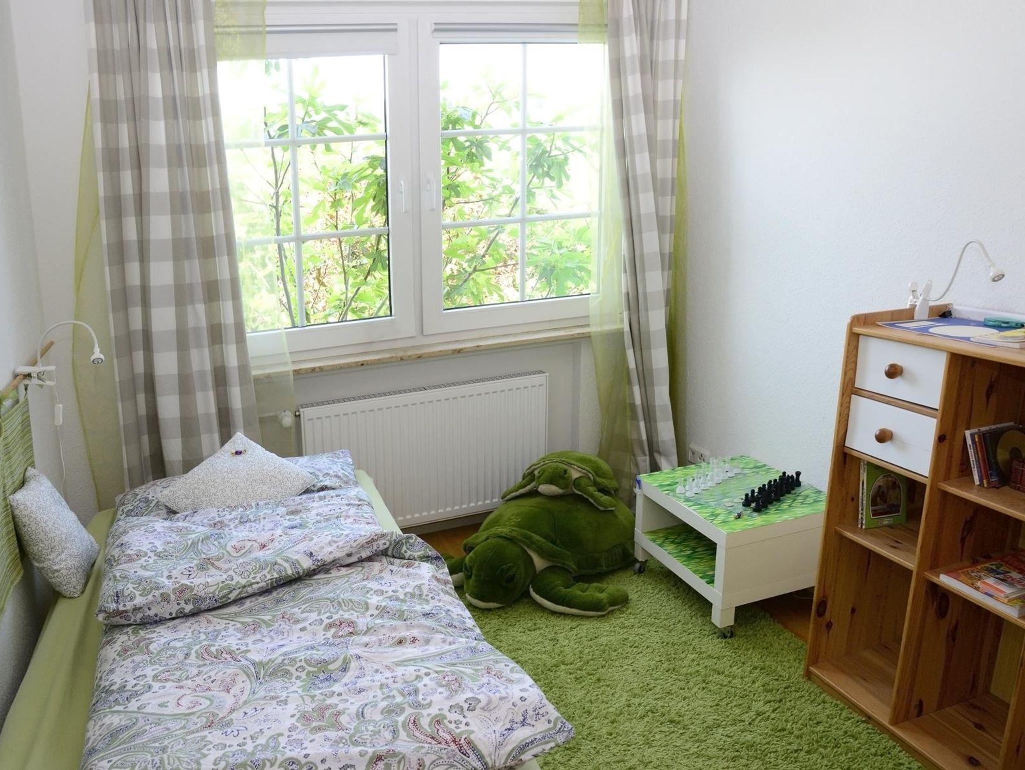 Das ebenerdig erreichbare Schlafzimmer ist mit seinem Stapelbett variabel nutzbar (behindertenfreundlich).