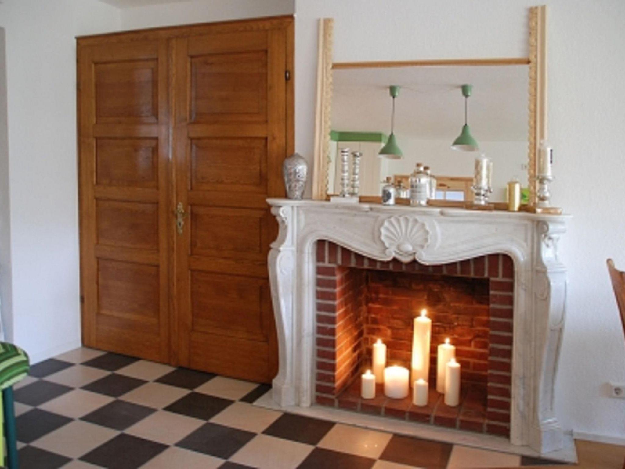 Das Ambiente im gesamten Raum wird beeinflusst durch den offenen Kamin, der Abends im Kerzenschein erstrahlt.
