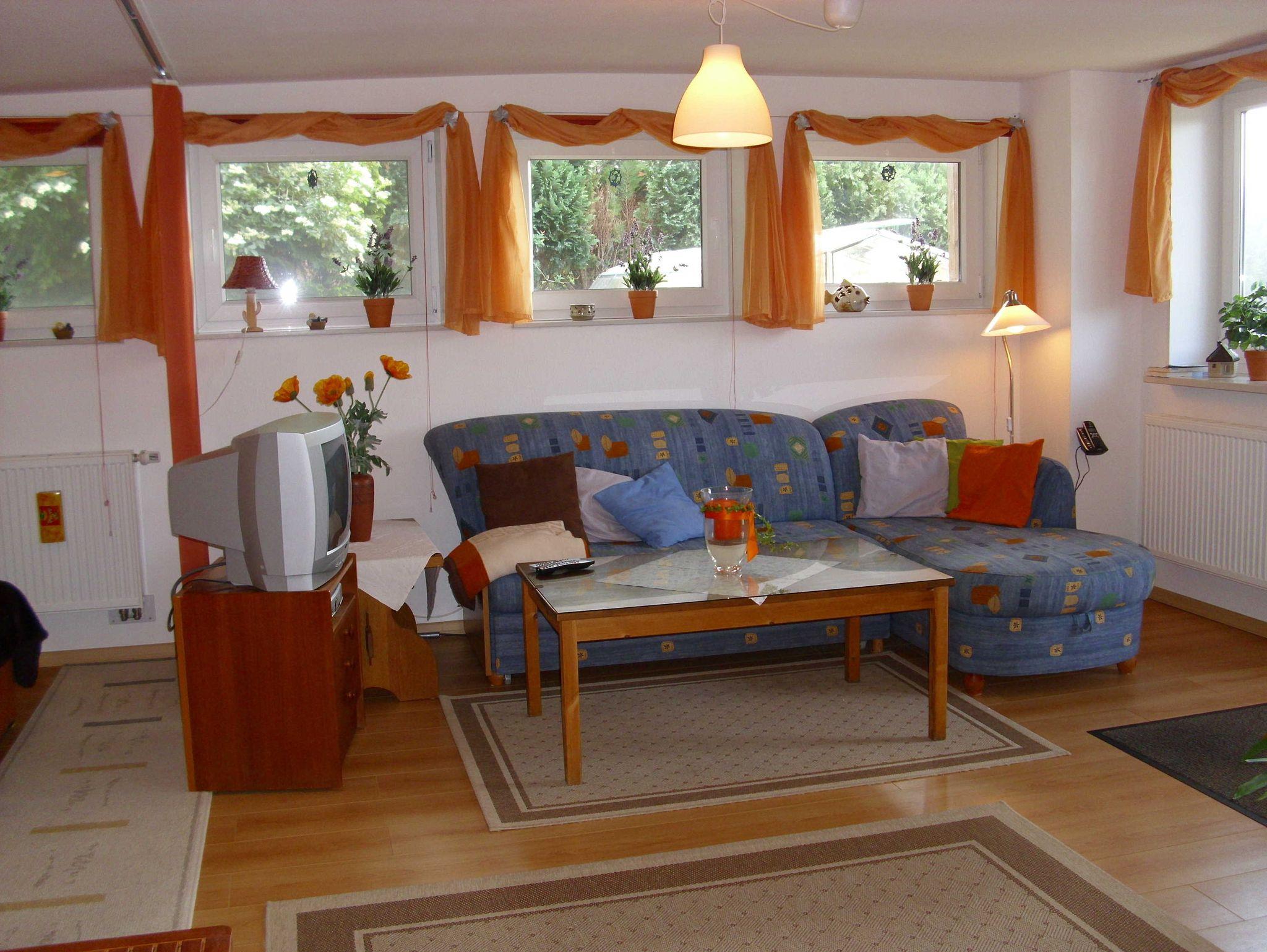 Das Appartment Birkenblick hat ca. 45m² Wohnfläche für max. 2 Erwachsene. Die Gäste können ein Wohnzimmer mit Couchgarnitur, den vom Wohnbereich durch einen Vorhang abgetrennten Schlafbereich mit Doppelbett, den Küchenbereich mit Essplatz und Dusche/WC nutzen.
