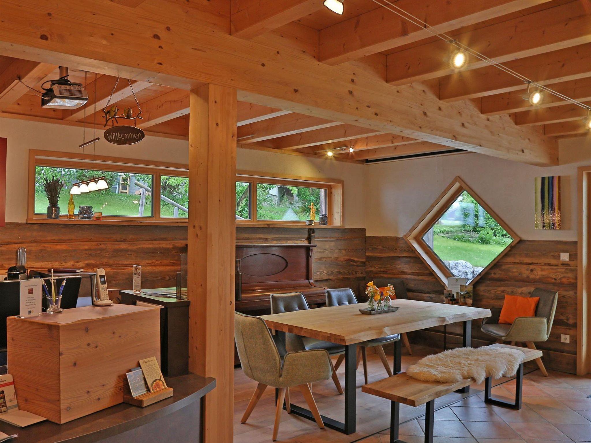 Das Bio-Gästehaus bietet 6 liebevoll eingerichtete Ferienwohnungen von 35-75 qm, Finnische-Sauna, Bio-Dampfbad und Infrarotsauna und kleinem Fitnessbereich. Gemeinsame Nutzung von Waschmaschine, Trockner und Bügelstation. Großer Naturgarten mit Teich und Liegewiese, Kinderspielplatz mit Kletterturm und mit Schaukeln. Garagen, Fahrrad-/Skiraum, Schneeschuhe, Tischtennis. Neu - Gästeempfang und Kaminzimmer.