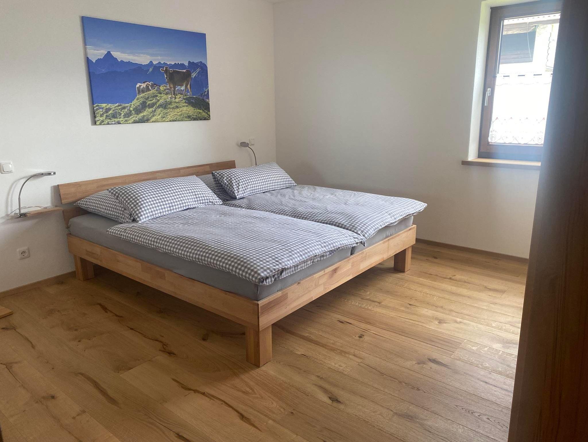 Wir heißen Sie herzlich willkommen in der Ferienwohnung Max. Mit 65 qm bietet diese geschmackvoll renovierte und modern eingerichtete Ferienwohnung genügend Platz für bis zu 3 Personen. Sie ist bestens ausgestattet für ihren Aufenthalt hier im wunderschönen Allgäu. Die Ferienwohnung befindet sich im 2. Stock und ist über Treppen erreichbar mit Blick auf die Berge. Im Nebengebäude befindet sich ein Schwimmbad, das Ihnen während ihres Aufenthaltes kostenlos zur Verfügung steht. Die Ferienwohnung ist aufgeteilt in Wohn- und Essbereich mit 1 Schlafmöglichkeit (Einzelbett 90x200cm), vollausgestattete Küche, Bad mit Dusche/WC und Schlafzimmer (Doppelbett 180x200cm). Ein besonderes Highlight ist der schöne Balkon.