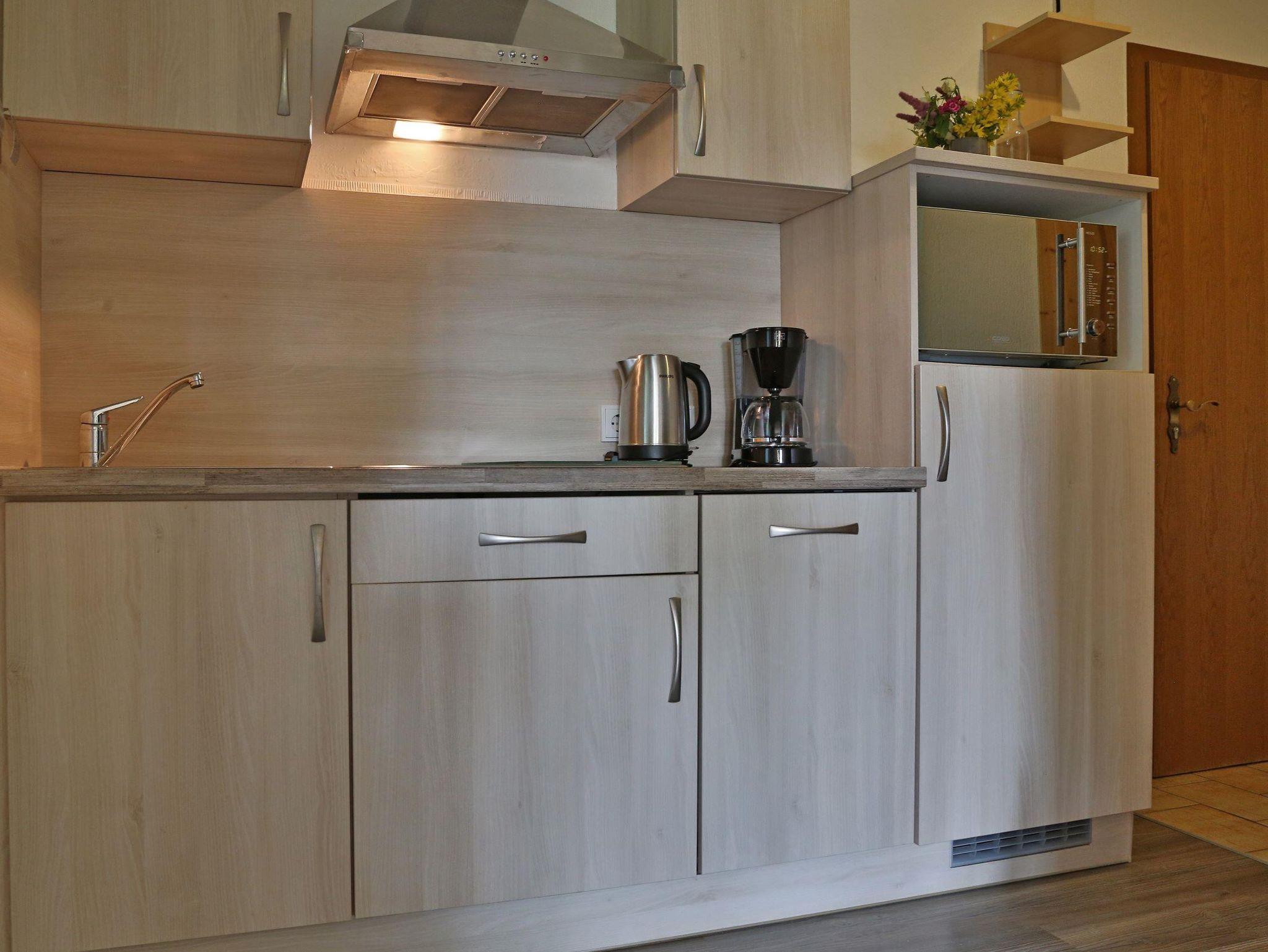 Die 4-Sterne-Ferienwohnung (Nichtraucher) befindet sich im 1.OG und bietet auf 50 Quadratmetern Platz für 2 Erwachsene und 1-2 Kind(er). Sie verfügt über einen Südbalkon mit Balkonmöbeln. Küche mit Geschirrspülmaschine, Cerankochfeld, Umluftofen mit Grill und Mikrowelle. Das Schlafzimmer ist mit Massivholzmöbeln, erhöhtem Doppelbett und einem Kleiderschrank ausgestattet. Der zweite kleine Schlafbereich verfügt über ein Einzelbett. Das Wohnzimmer ist mit neuen Polstermöbeln (Schlafsofa), einem Massivholzschrank und einem Essbereich eingerichtet. HD-TV (Kabel Digital), DVD, Radio. Neuwertiges Badezimmer/WC mit Handtuchwärmer, Haartrockner und kostenlosen Pflegeprodukten. Freie Nutzung von WLAN, Telefon, Bettwäsche und Handtücher. Garagennutzung auf Anfrage für 5,-€ pro Tag. Saunahandtücher für 7,-€ pro Stück erhältlich.