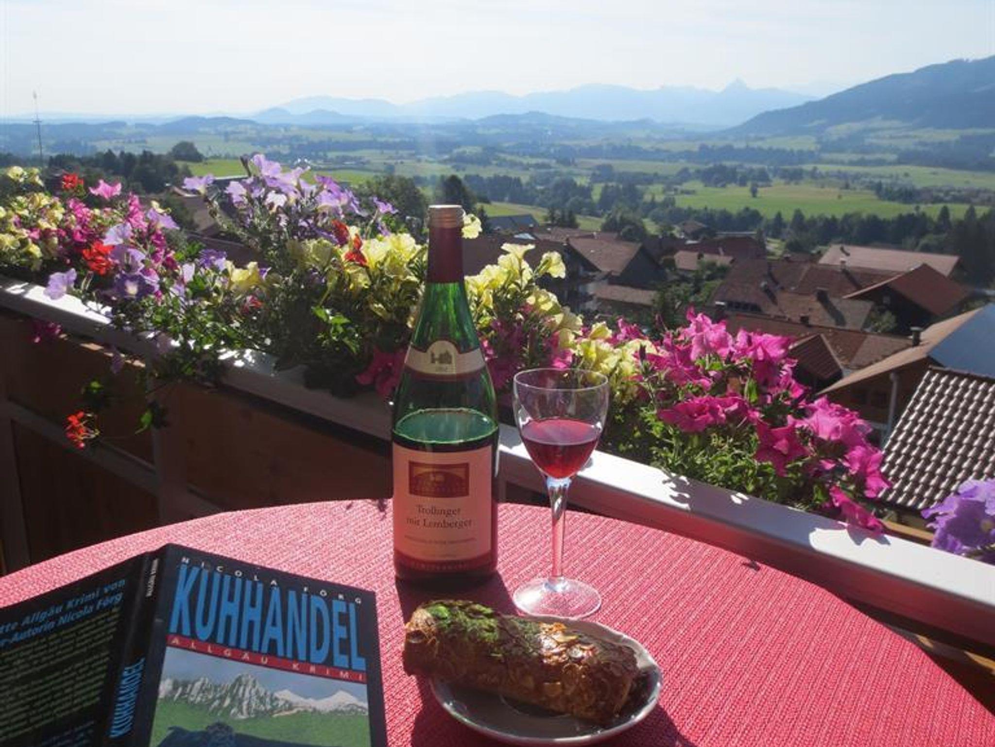 Freie Aussicht auf die Zugspitze und Allgäuer Bergwelt.