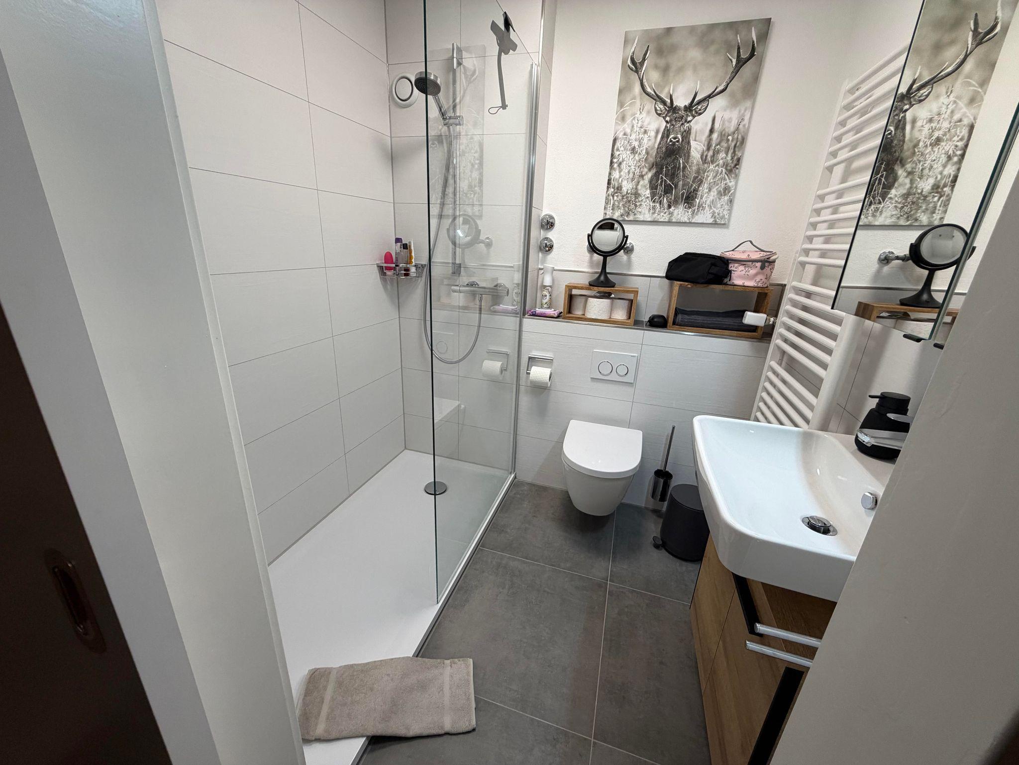 Willkommen in Ihrer Wohlfühloase! Unsere im Jahr 2025 kernsanierte Wohnung besticht durch modernes Design und höchsten Komfort. Das Badezimmer verfügt über eine elegante, begehbare Dusche – ideal für einen erfrischenden Start in den Tag.