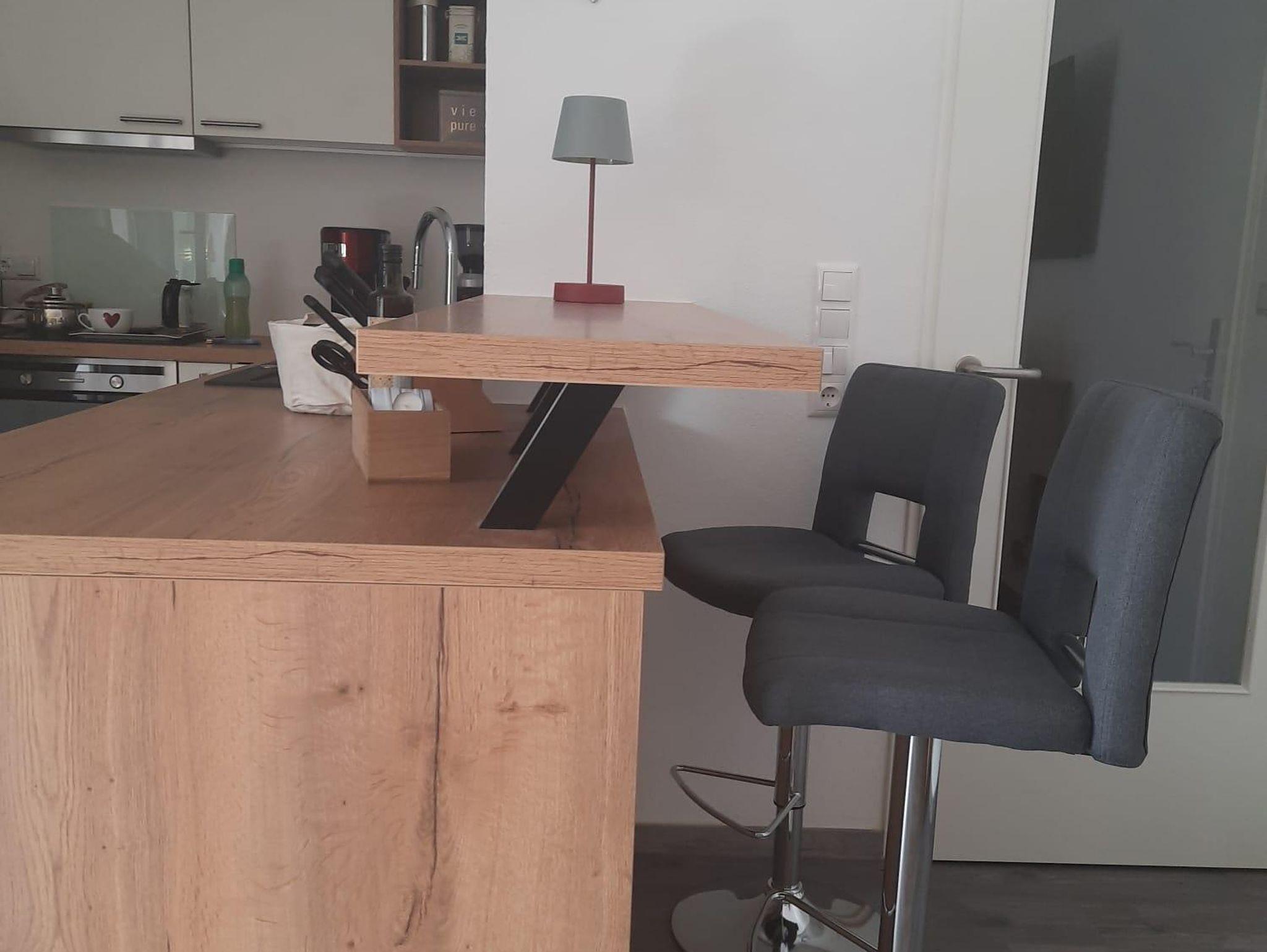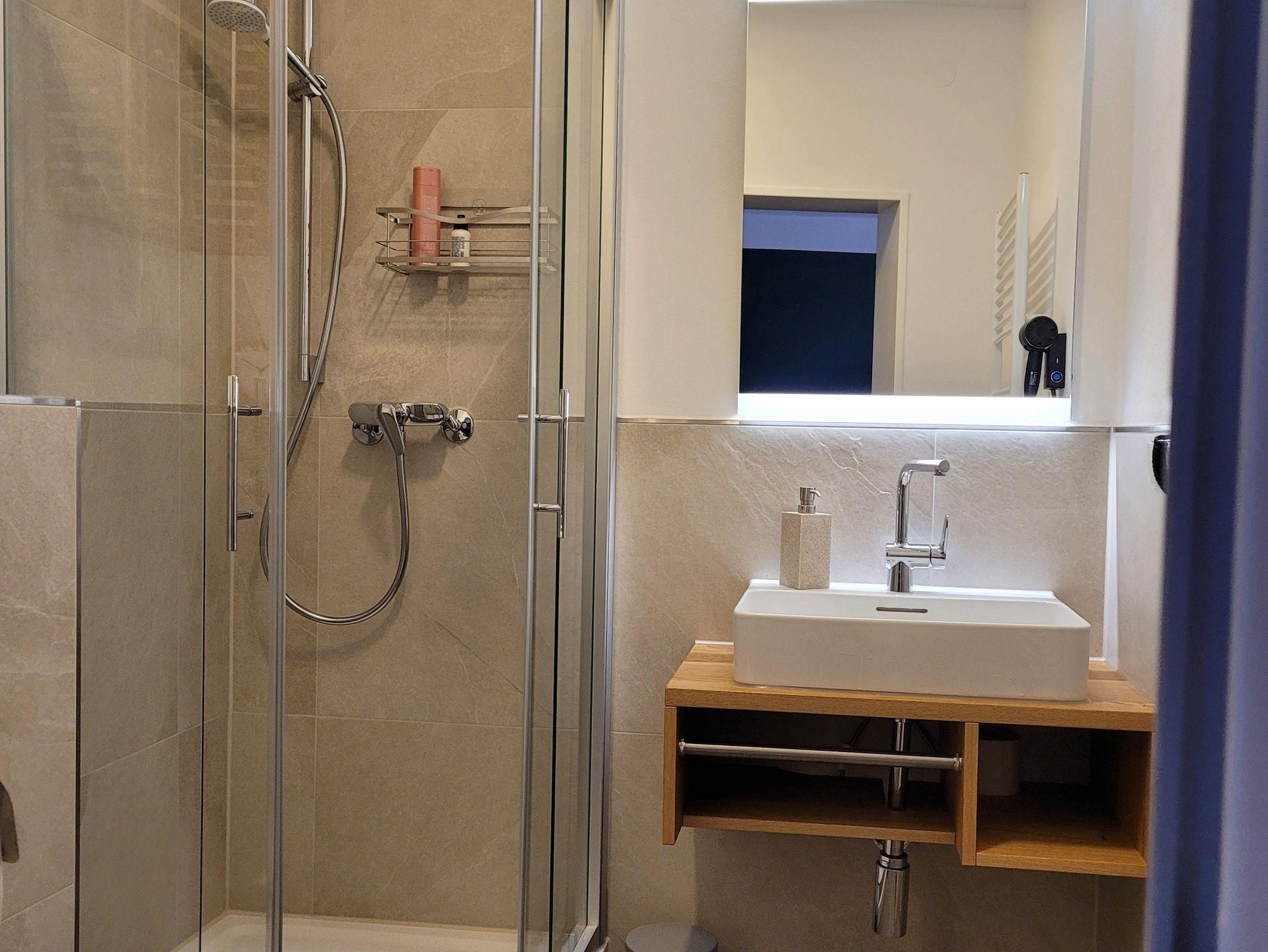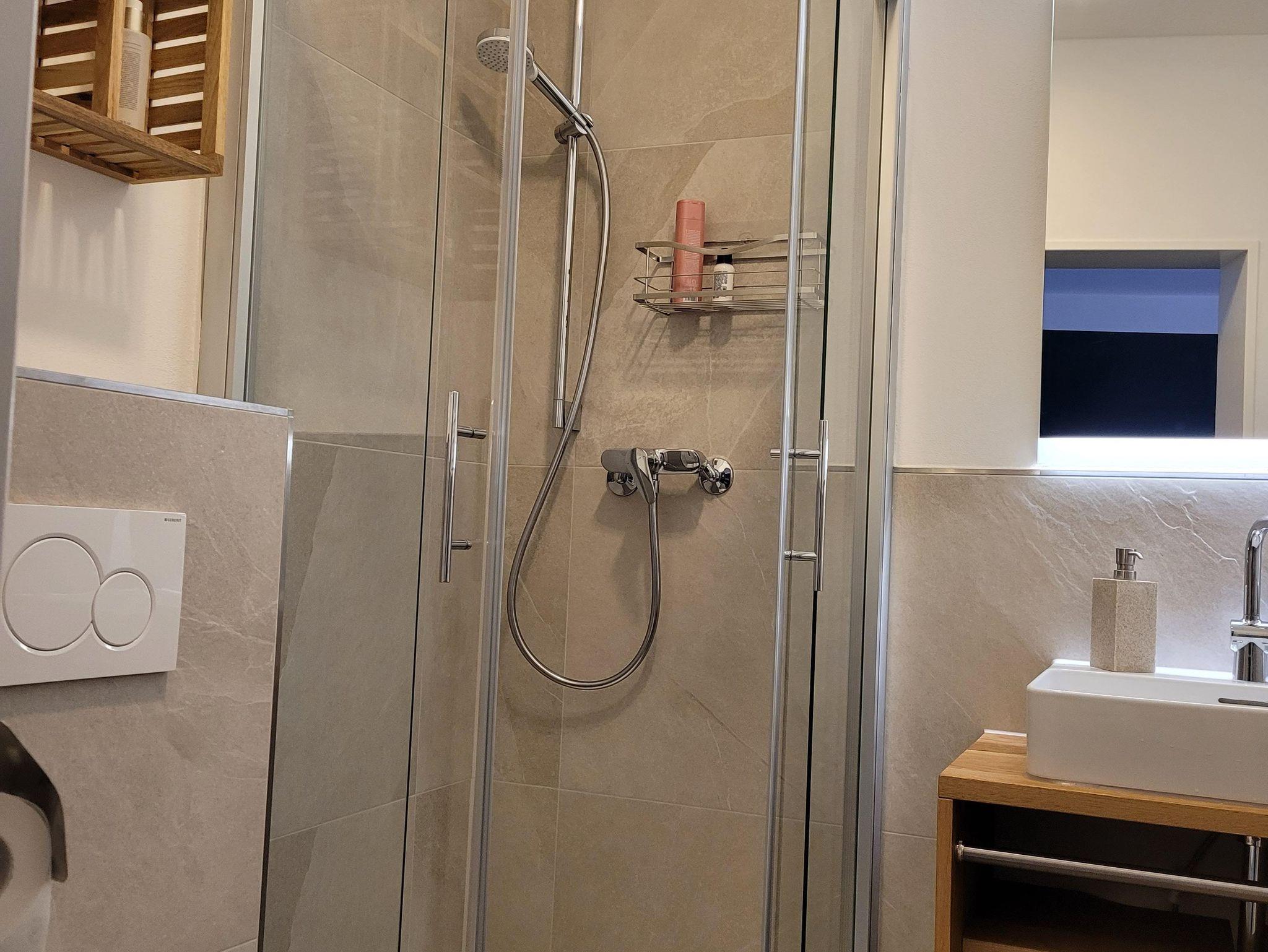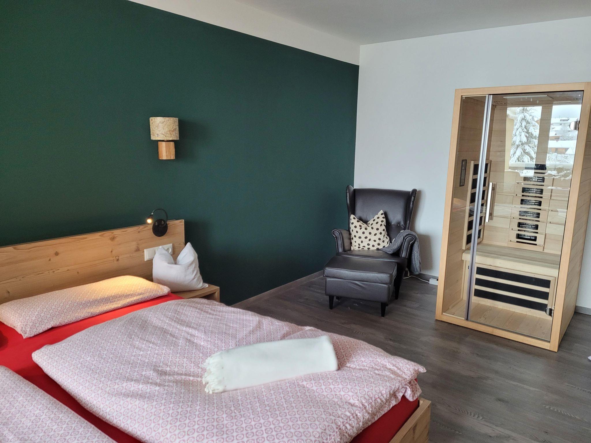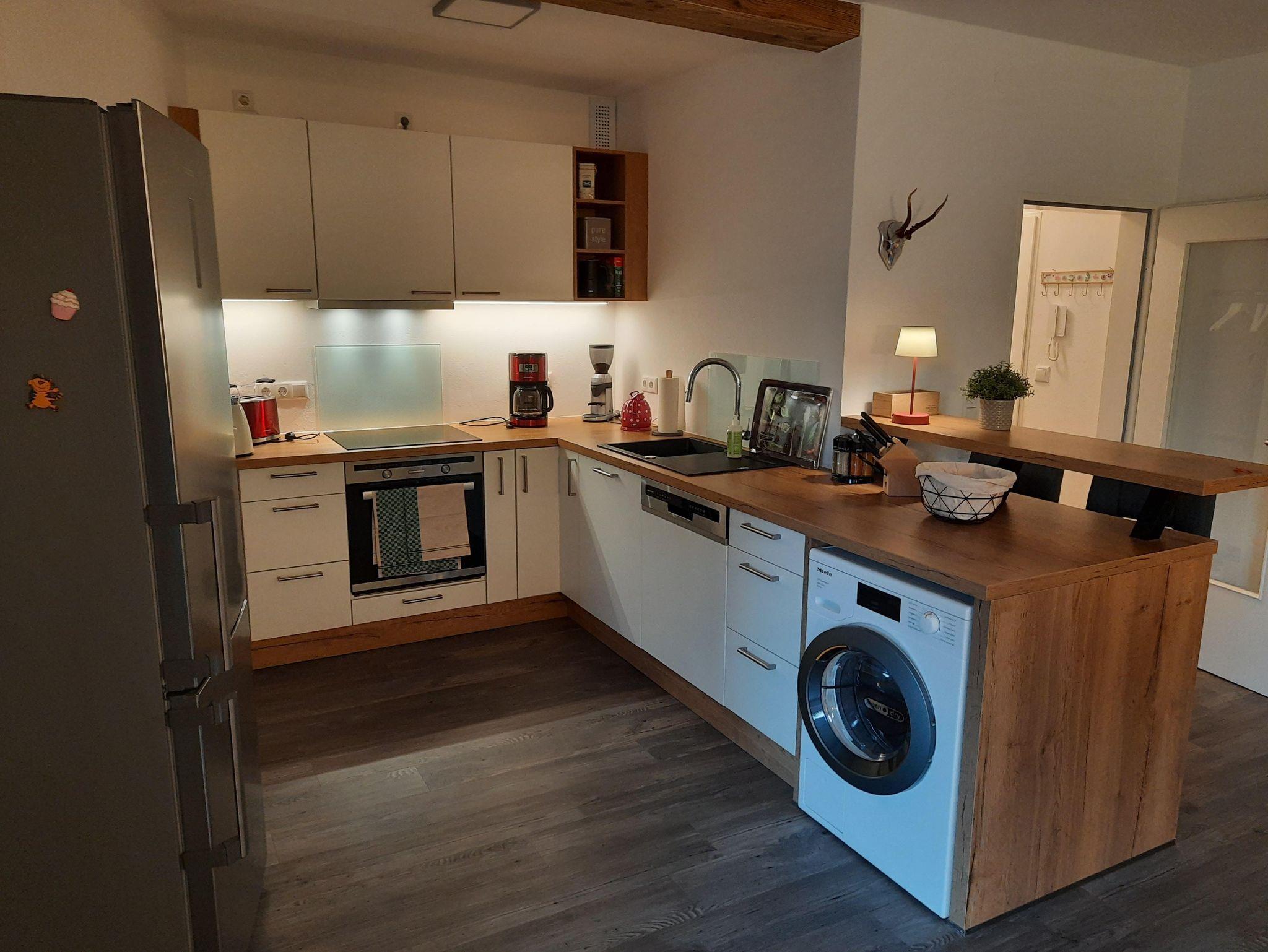 Die großzügige, 68 qm große Wohnung verfügt über ein großes Wohnzimmer mit einem ausziehbaren hochwertigen Schlafsofa für 2 Personen, Esstisch, schwenkbarem Flachbild-TV, WLAN, offene Küche (Geschirrspüler, Waschmaschine mit Trockner, Kaffeemaschine, Wasserkocher etc.) mit Theke und Barhockern, ein separates WC, ein großes Schlafzimmer mit Doppelbett für 2 Personen, Leselampen am Bett mit eigener Dusche, WC, Handtuchtrockner und Fön sowie einer Wärmekabine zum Entspannen. Sie unterstützt auch die Linderung von Rückenschmerzen und löst Verspannungen und Muskelkater.