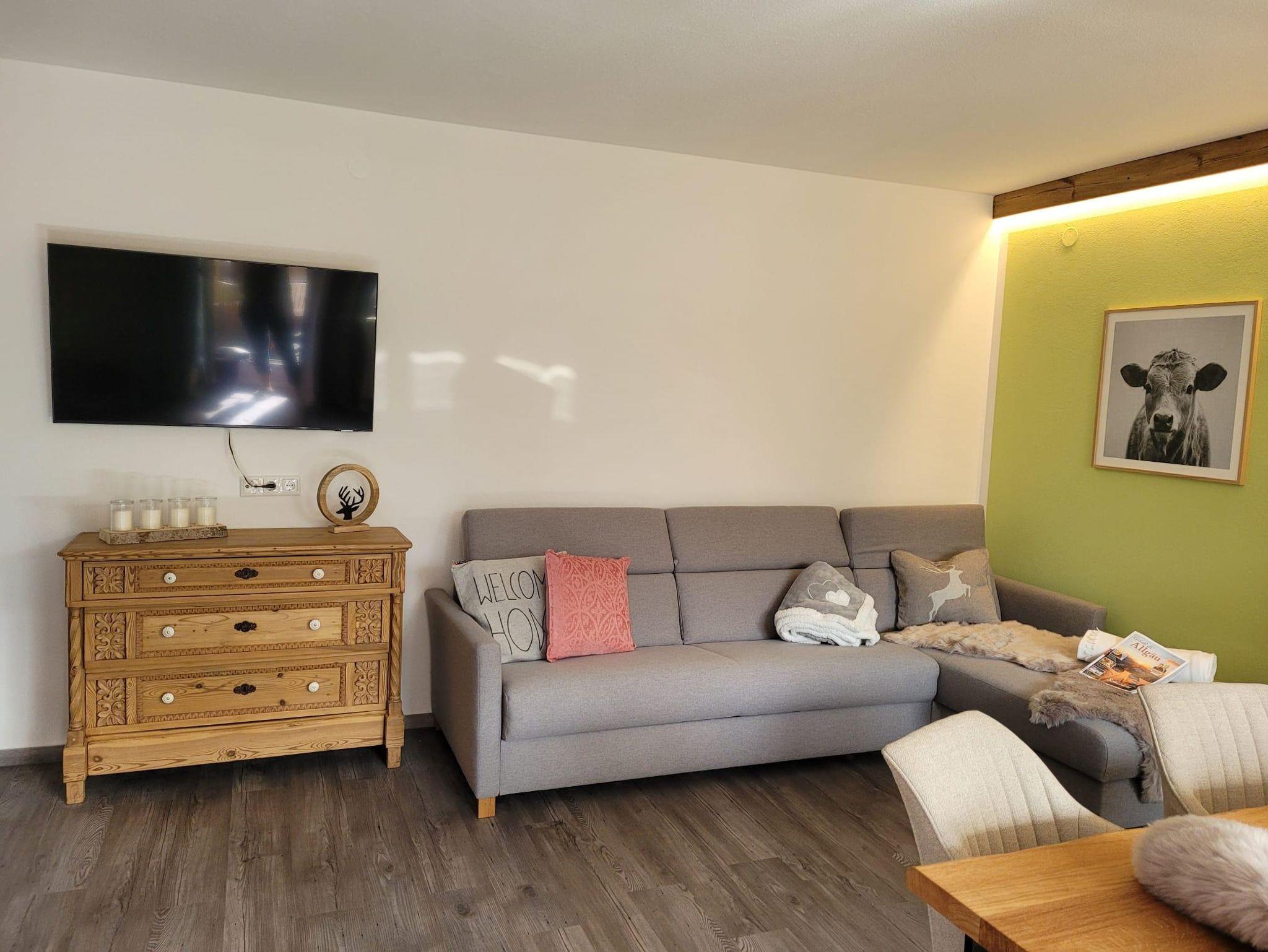 Das Haus bietet Ihnen einen ständig zugängigen Pool im Edgeschoss. Das Objekt liegt sehr ruhig gelegen direkt am Bahnhof -Entfernung zu den Gleisen ca. 50 m -von Oy-Mittelberg und ist per Bahn stündlich oder mit dem Bus zu erreichen. Die Wohnung liegt im 2. Stock auf der bahnhofabgewandeten Süd-West - Seite mit Bergblick und Blick ins Grüne gelegen.